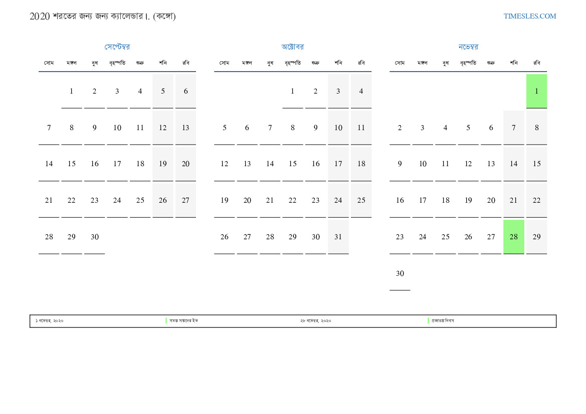 কঙ্গোর জন্য 2020 সালের শরতের জন্য ছুটি এবং সাপ্তাহিক ছুটির সাথে পিডিএফ ক্যালেন্ডার ডাউনলোড এবং মুদ্রণ করুন