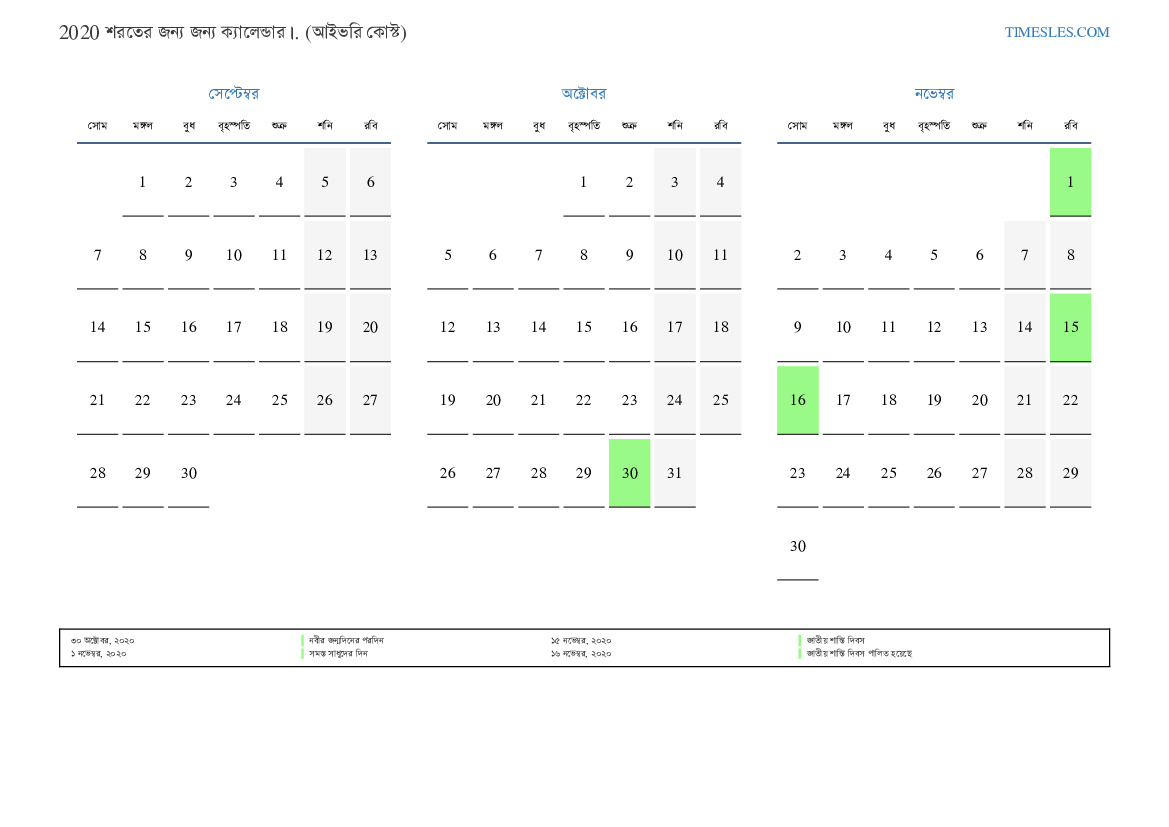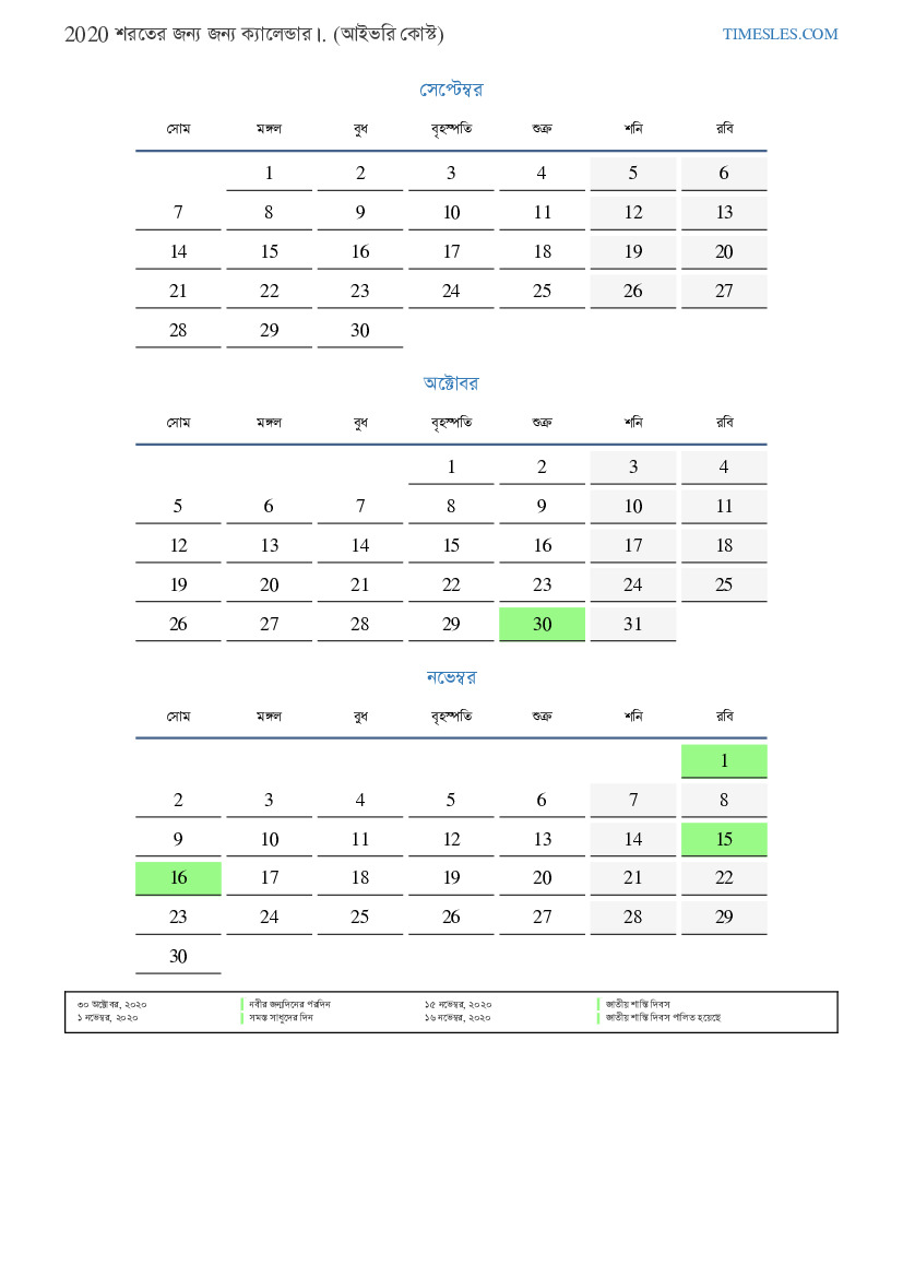 কোট ডি'ভায়ারের জন্য 2020 সালের শরতের জন্য ছুটি এবং সাপ্তাহিক ছুটির সাথে পিডিএফ ক্যালেন্ডার ডাউনলোড এবং মুদ্রণ করুন