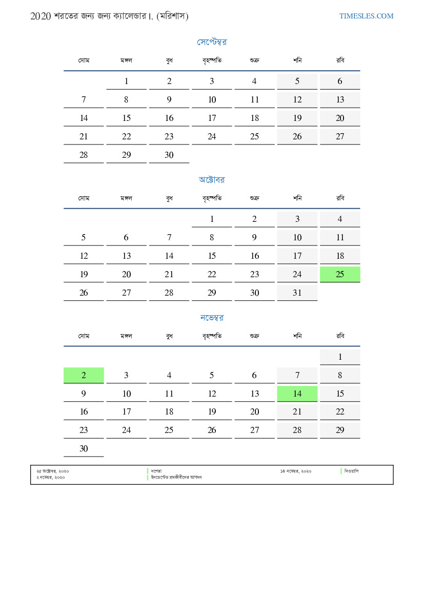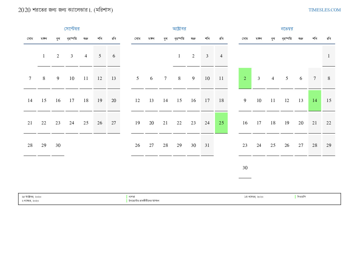 মরিশাসের জন্য 2020 সালের শরতের জন্য ছুটি এবং সাপ্তাহিক ছুটির সাথে পিডিএফ ক্যালেন্ডার ডাউনলোড এবং মুদ্রণ করুন
