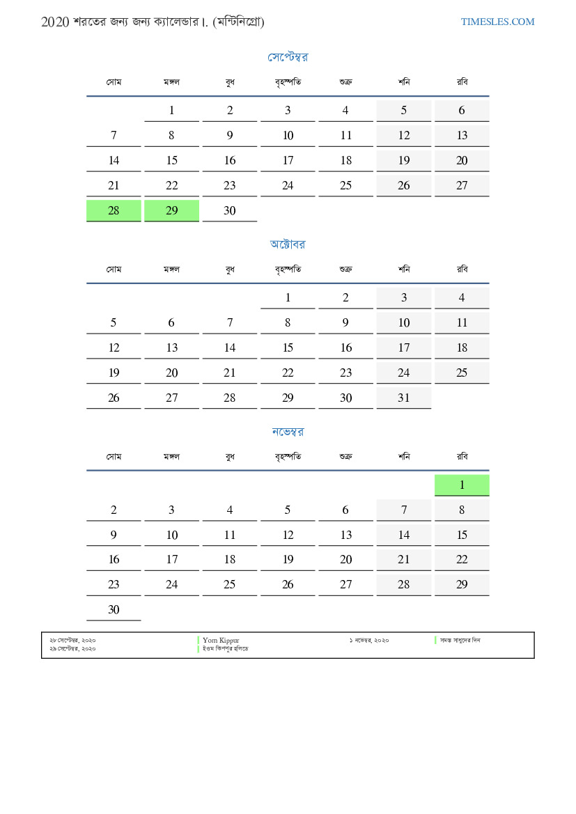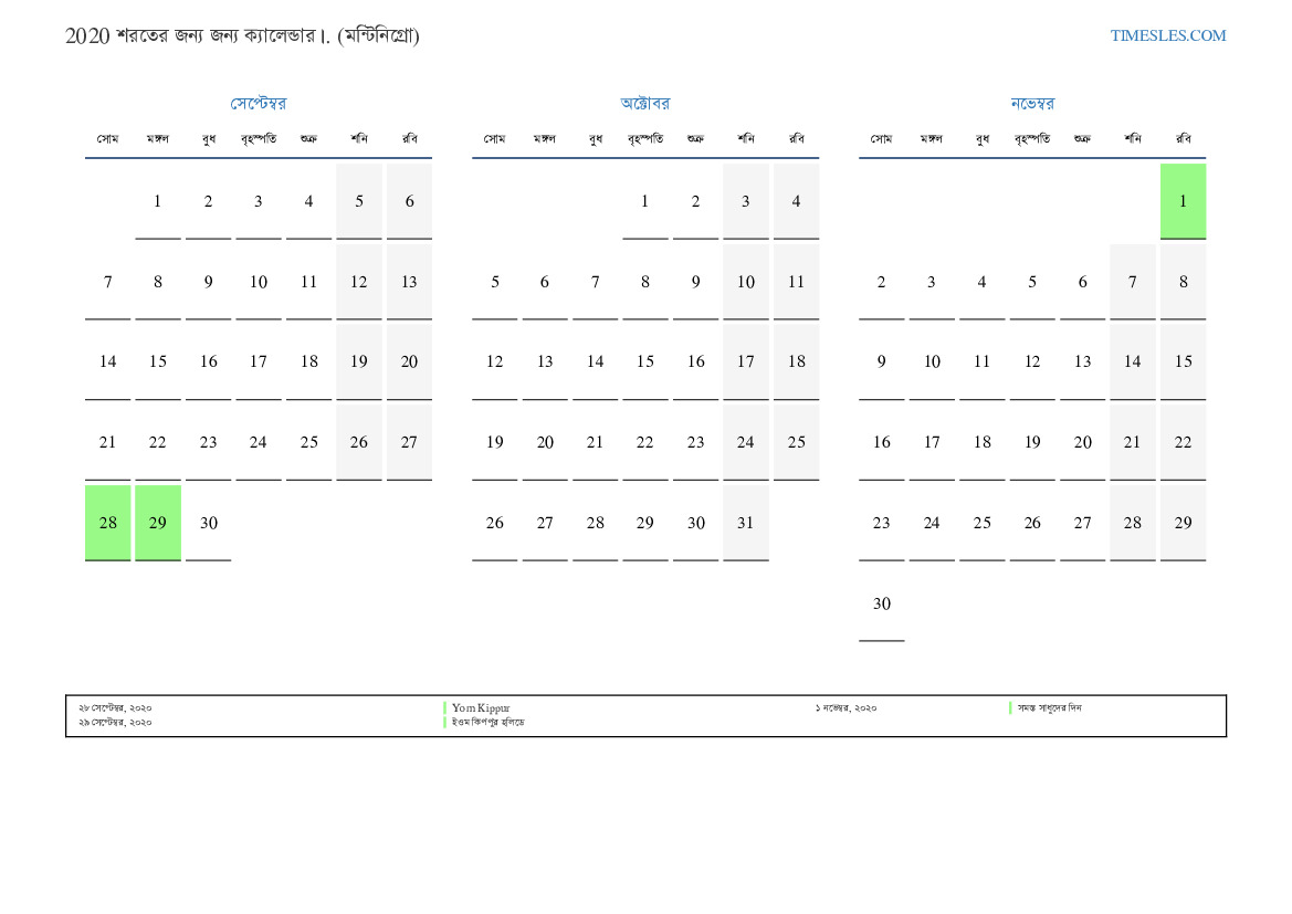 মন্টিনিগ্রোর জন্য 2020 সালের শরতের জন্য ছুটি এবং সাপ্তাহিক ছুটির সাথে পিডিএফ ক্যালেন্ডার ডাউনলোড এবং মুদ্রণ করুন