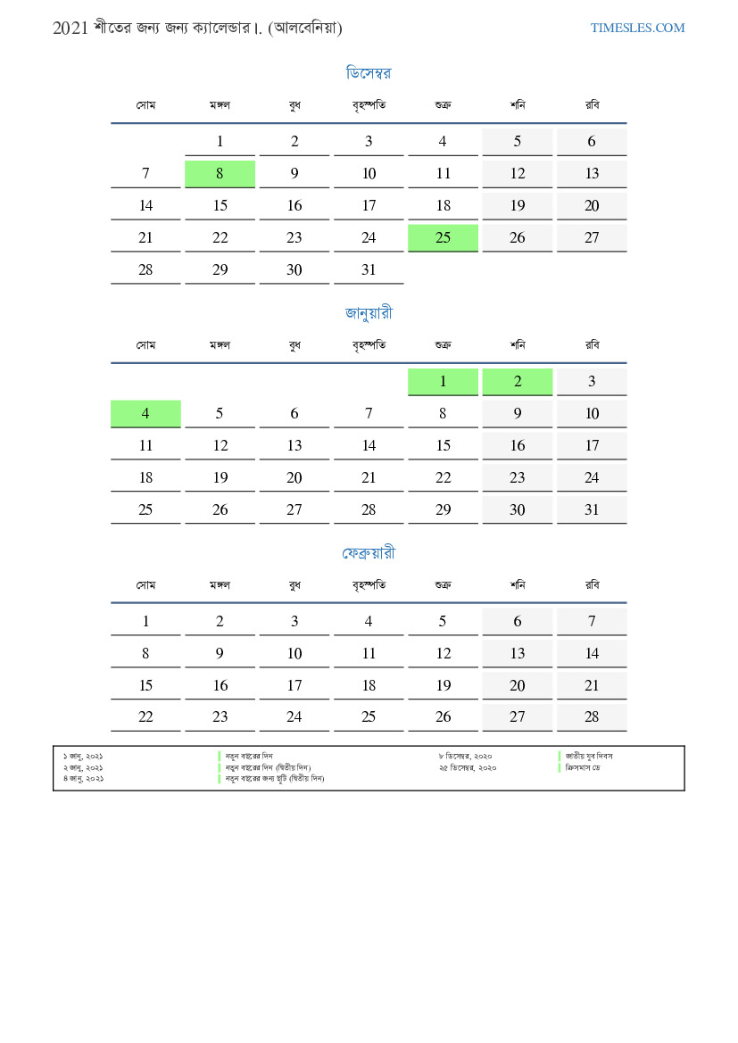 ছুটির দিনগুলি পোর্ট্রেট ক্যালেন্ডার