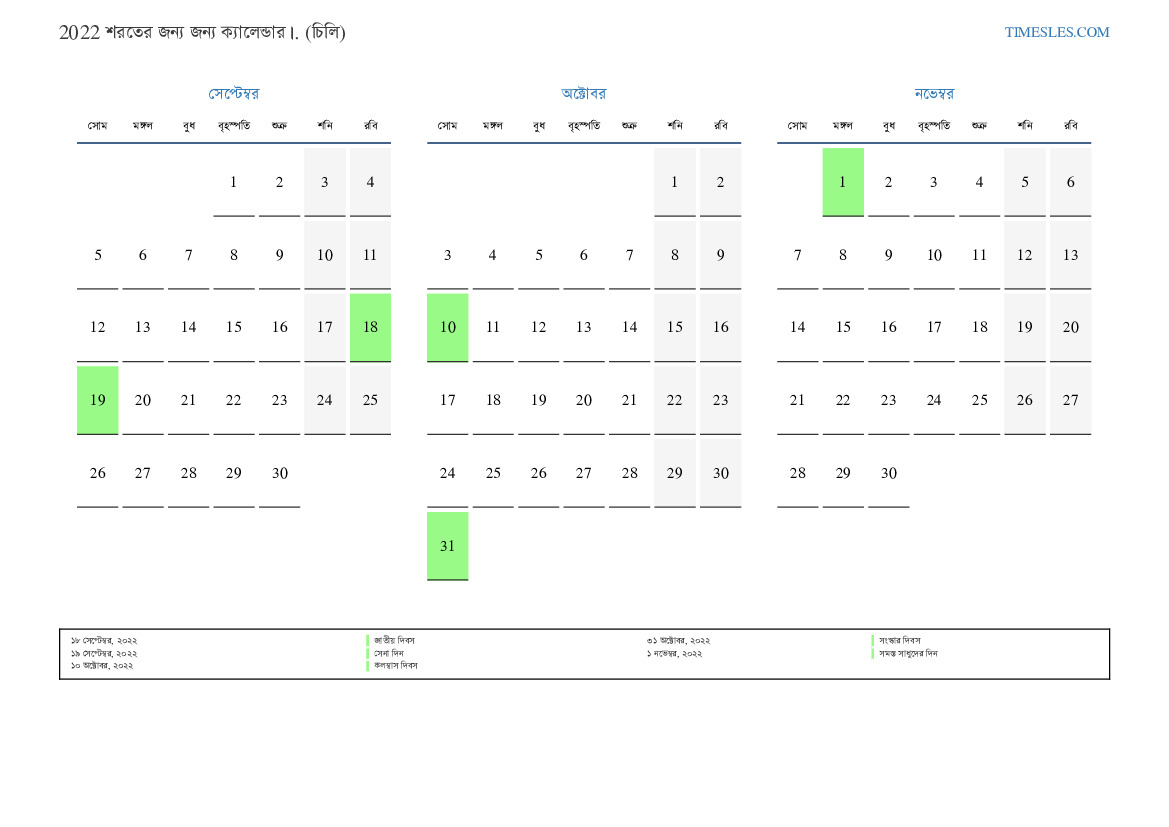 চিলির জন্য 2022 সালের শরতের জন্য ক্যালেন্ডার