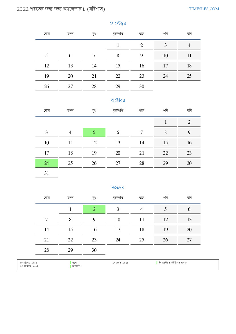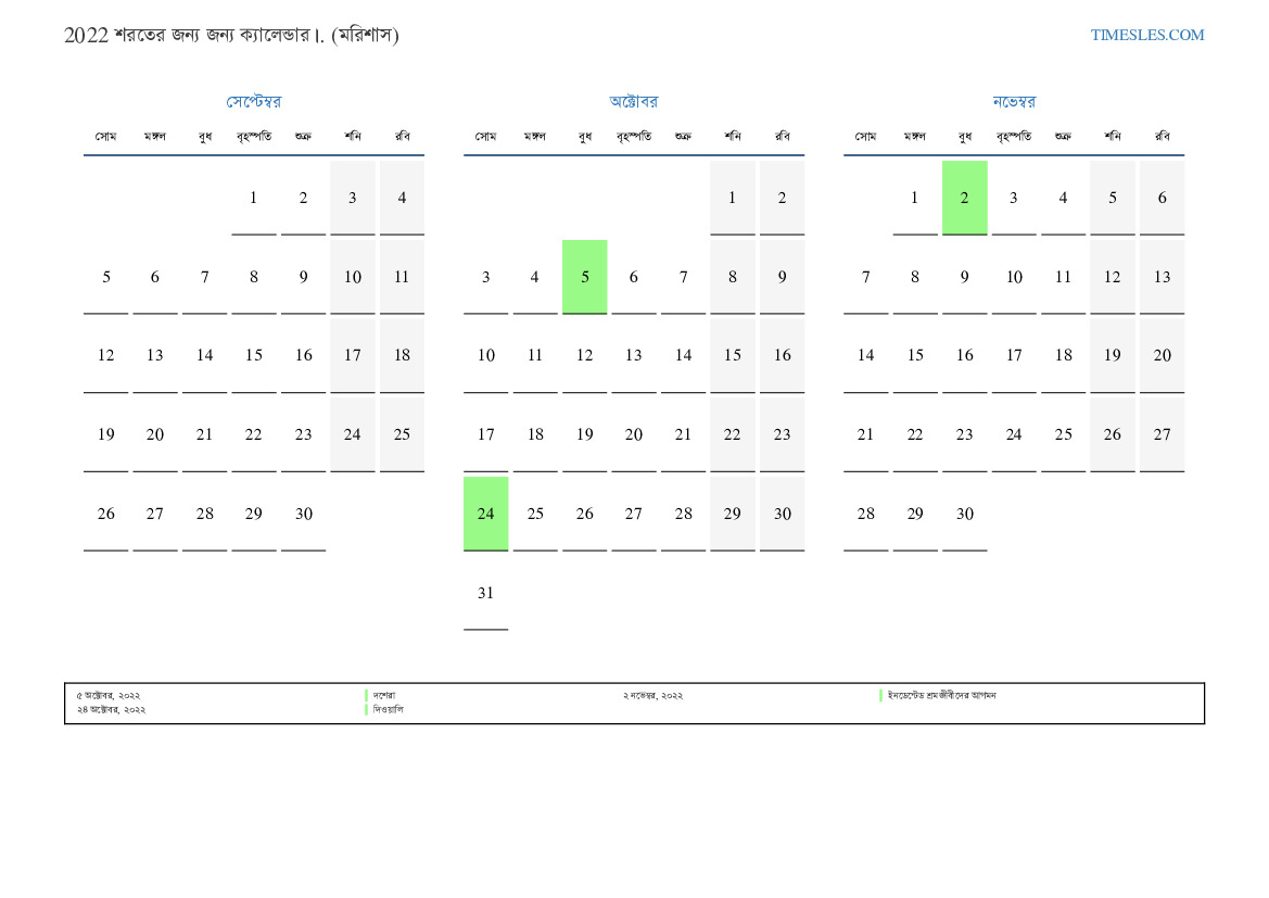 মরিশাসের জন্য 2022 সালের শরতের জন্য ছুটি এবং সাপ্তাহিক ছুটির সাথে পিডিএফ ক্যালেন্ডার ডাউনলোড এবং মুদ্রণ করুন