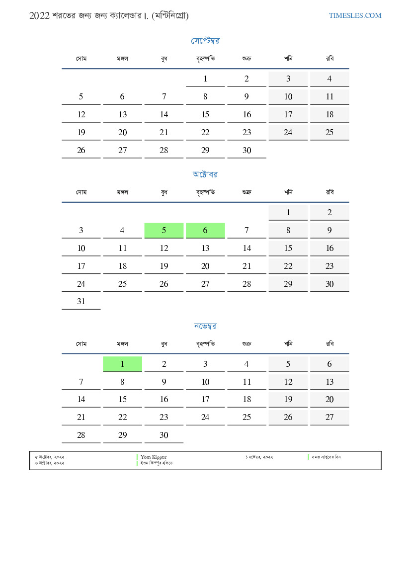 মন্টিনিগ্রোর জন্য 2022 সালের শরতের জন্য ছুটি এবং সাপ্তাহিক ছুটির সাথে পিডিএফ ক্যালেন্ডার ডাউনলোড এবং মুদ্রণ করুন