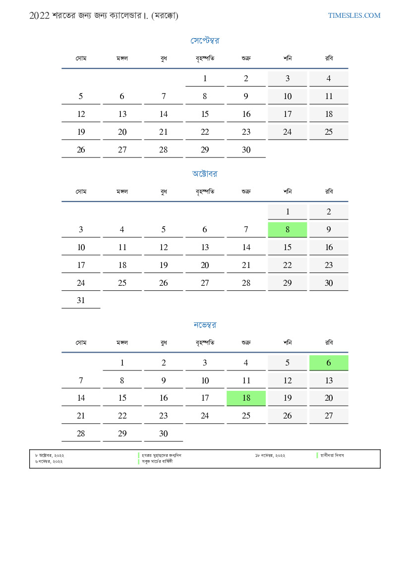 মরক্কোর জন্য 2022 সালের শরতের জন্য ছুটি এবং সাপ্তাহিক ছুটির সাথে পিডিএফ ক্যালেন্ডার ডাউনলোড এবং মুদ্রণ করুন