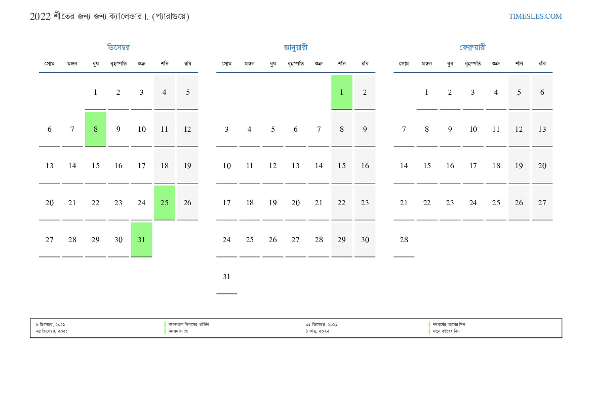 ছুটির দিনগুলি ল্যান্ডস্কেপ ক্যালেন্ডার