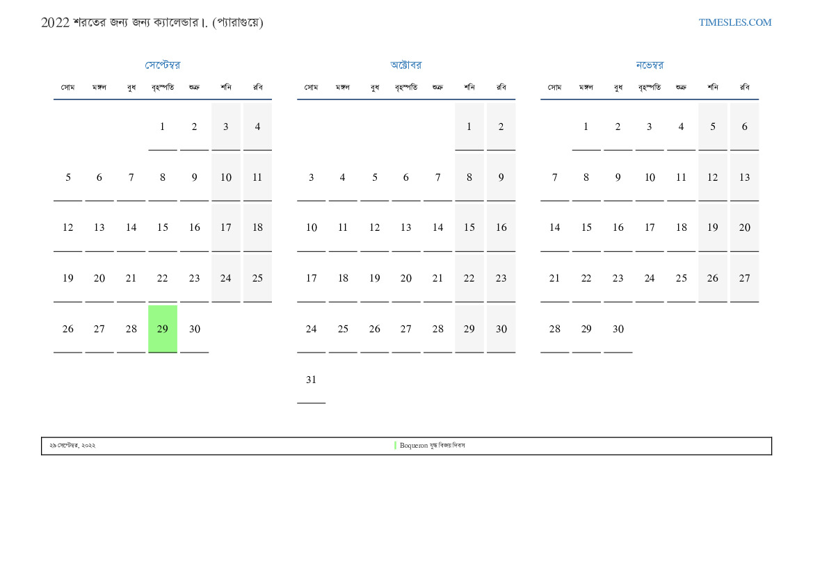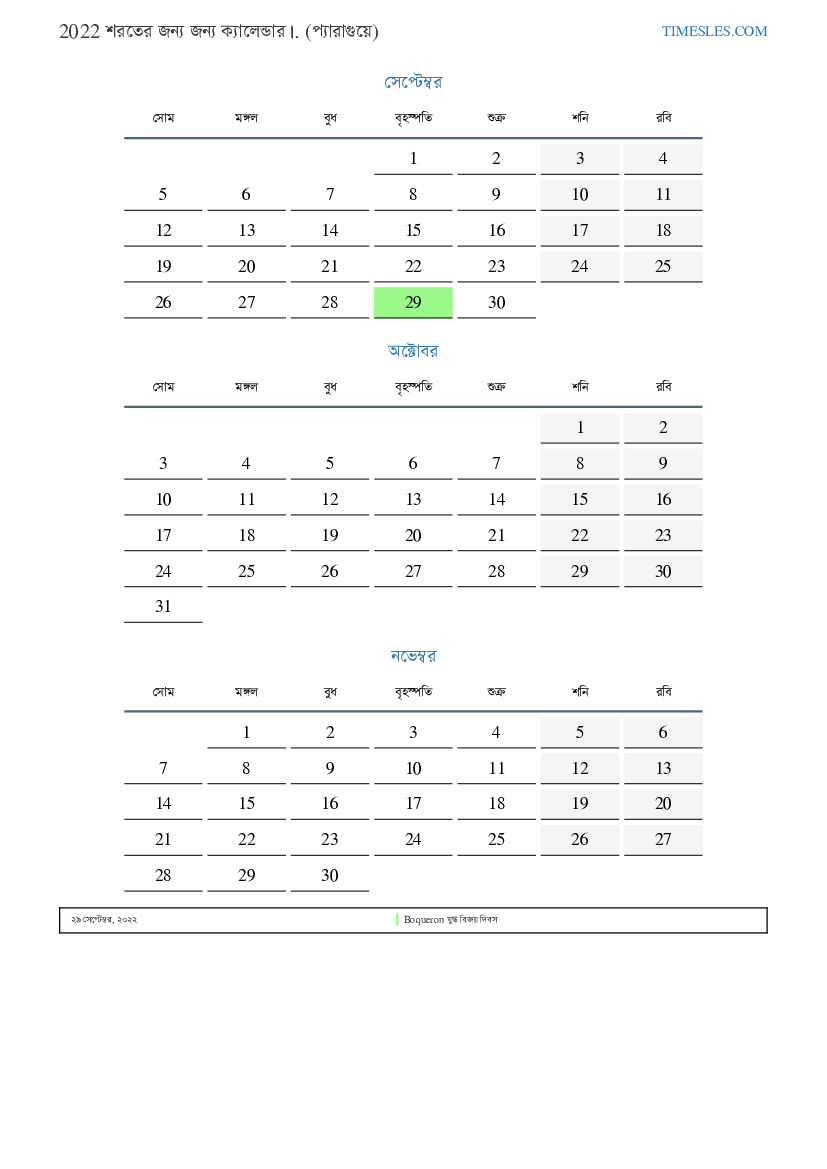 প্যারাগুয়ের জন্য 2022 সালের শরতের জন্য ক্যালেন্ডার