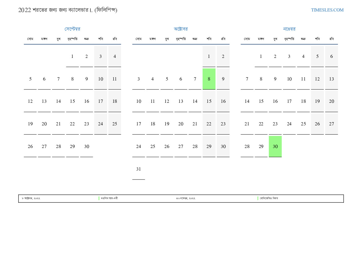ফিলিপাইন জন্য 2022 সালের শরতের জন্য ক্যালেন্ডার