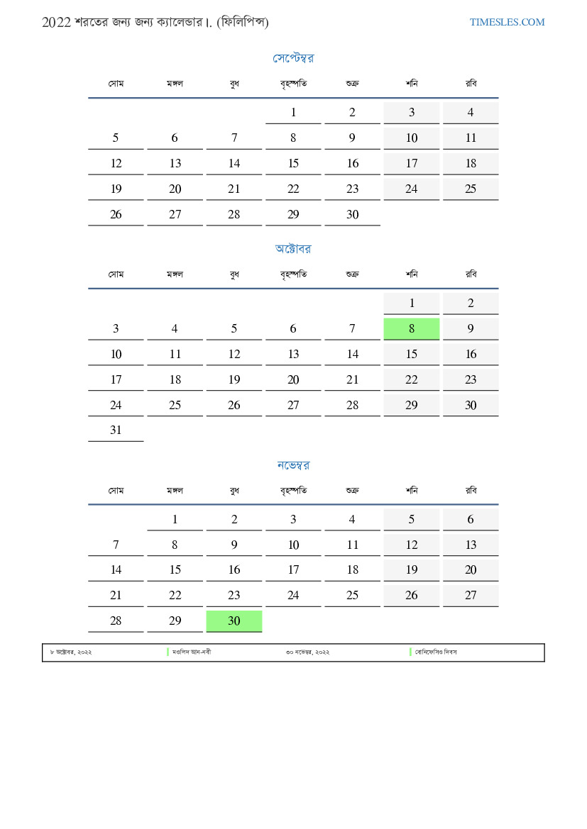ফিলিপাইন জন্য 2022 সালের শরতের জন্য ছুটি এবং সাপ্তাহিক ছুটির সাথে পিডিএফ ক্যালেন্ডার ডাউনলোড এবং মুদ্রণ করুন