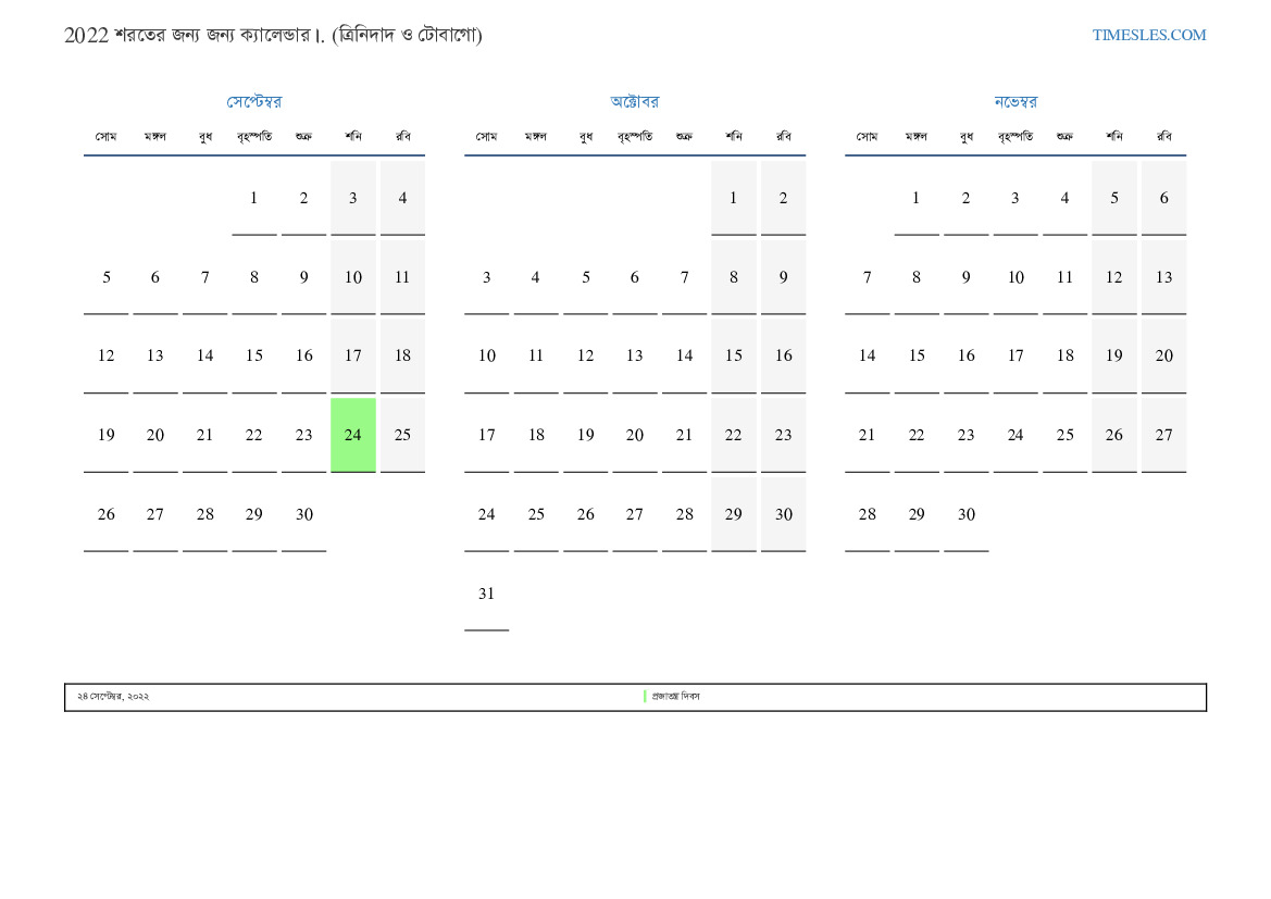 ত্রিনিদাদ ও টোবাগো এর জন্য 2022 সালের শরতের জন্য ছুটি এবং সাপ্তাহিক ছুটির সাথে পিডিএফ ক্যালেন্ডার ডাউনলোড এবং মুদ্রণ করুন