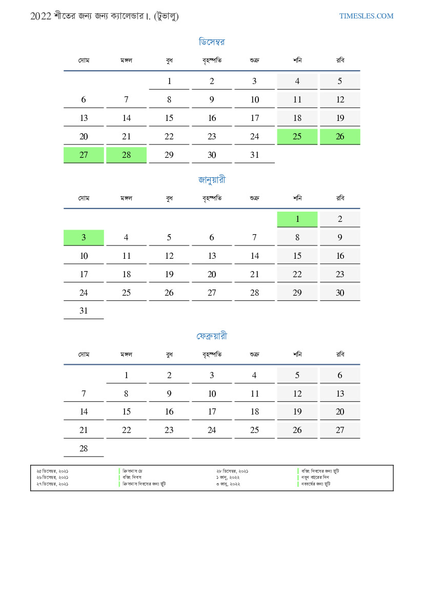 ছুটির দিনগুলি পোর্ট্রেট ক্যালেন্ডার