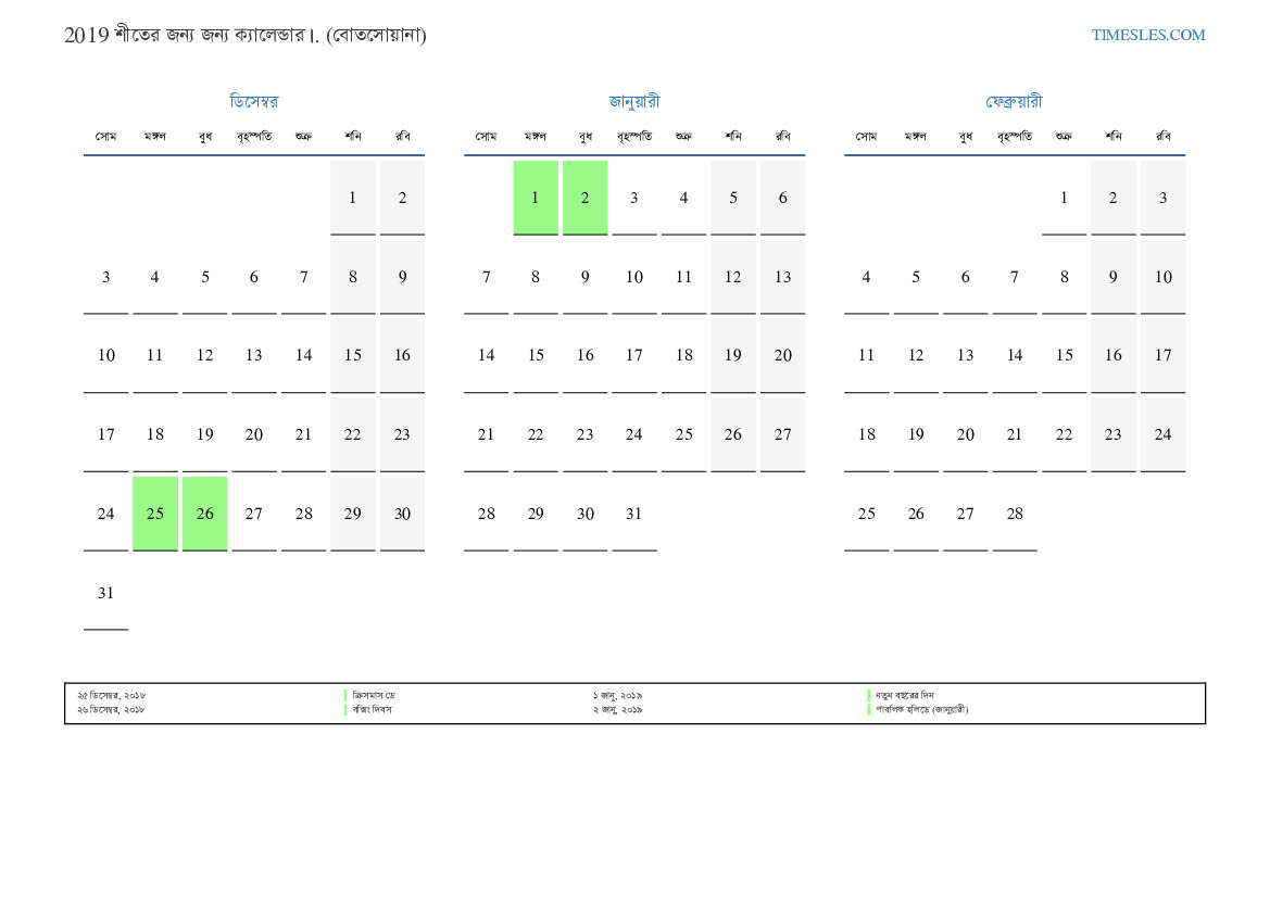 ছুটির দিনগুলি ল্যান্ডস্কেপ ক্যালেন্ডার