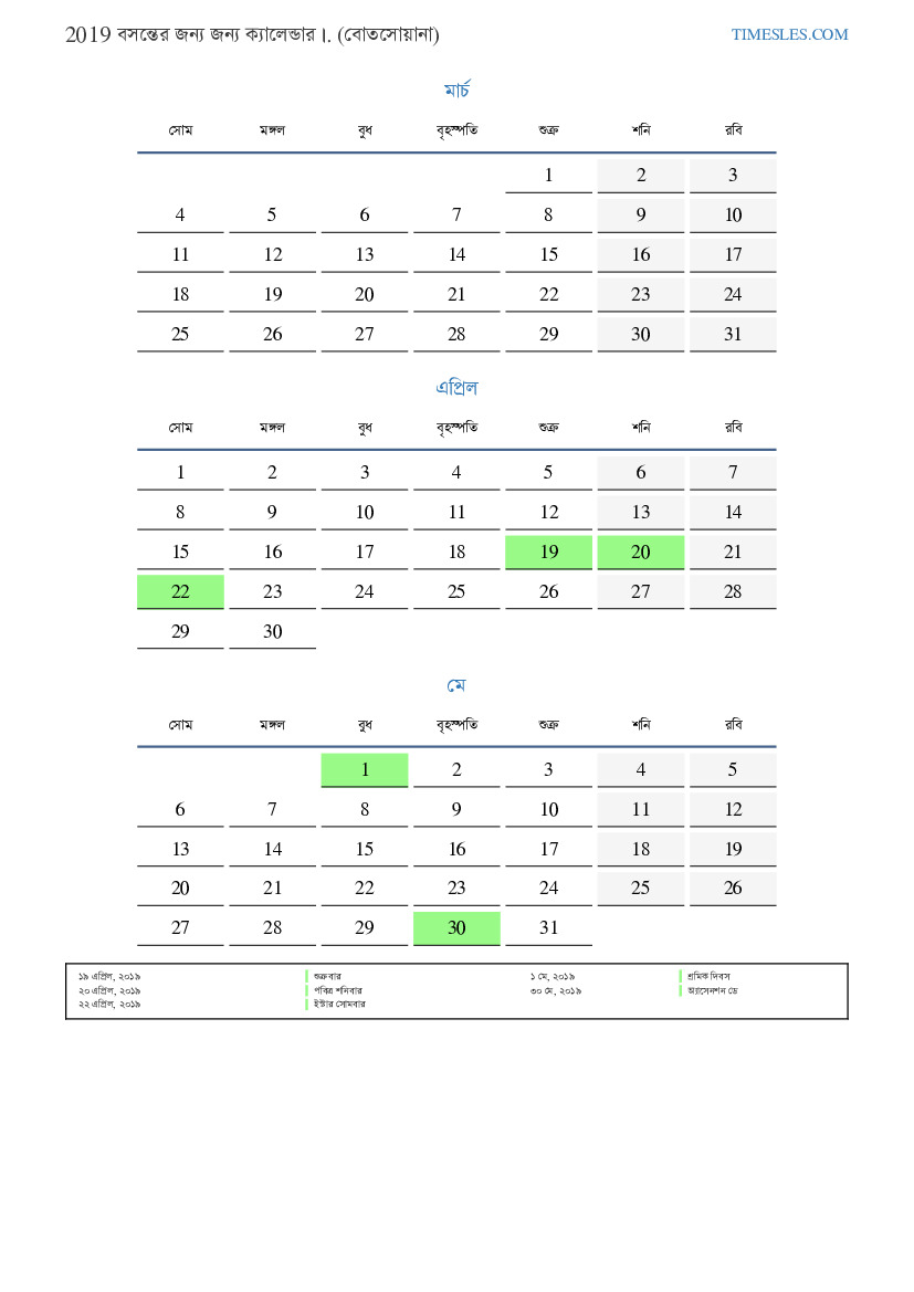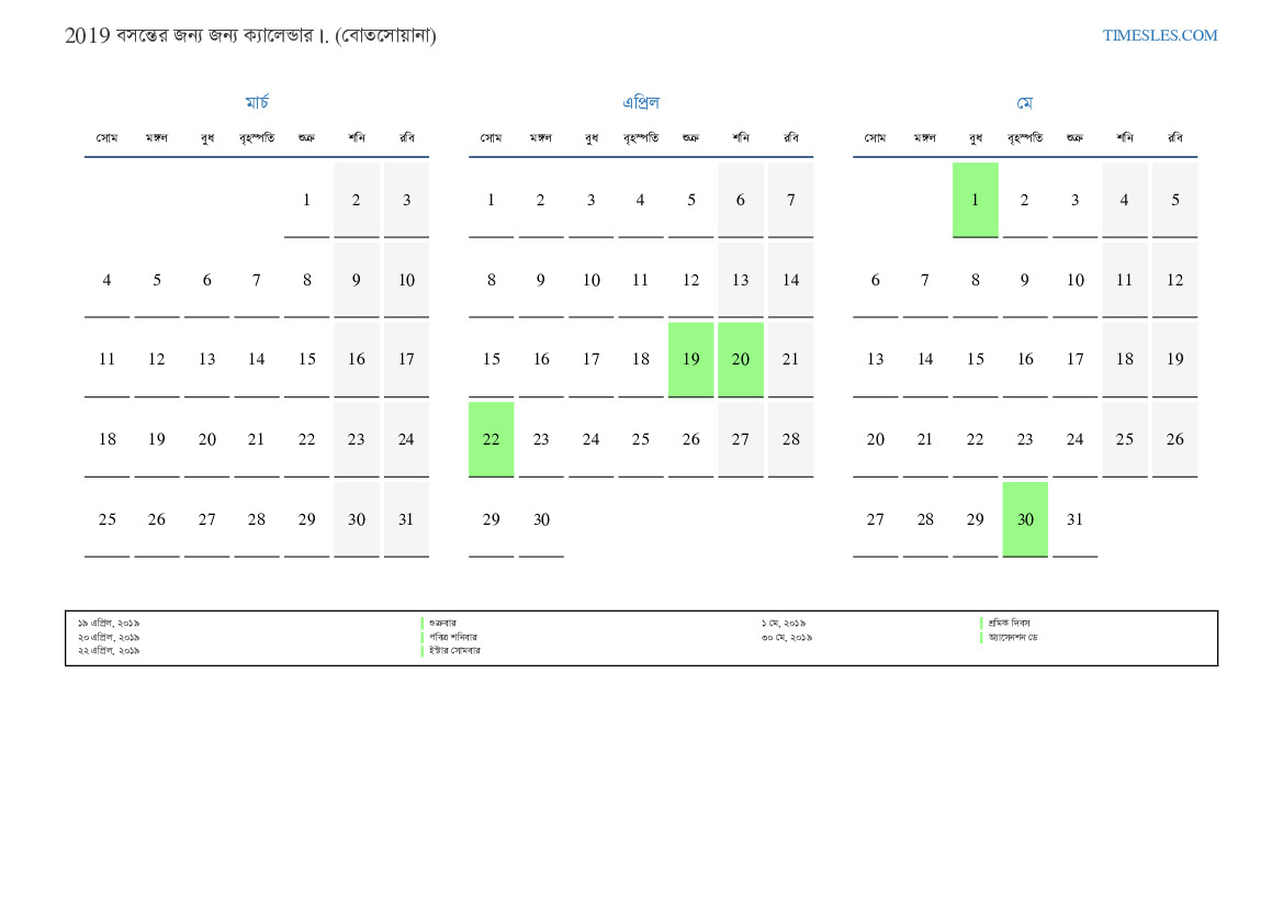 বতসোয়ানা জন্য 2019 সালের বসন্তের জন্য ছুটি এবং সাপ্তাহিক ছুটির সাথে পিডিএফ ক্যালেন্ডার ডাউনলোড এবং মুদ্রণ করুন