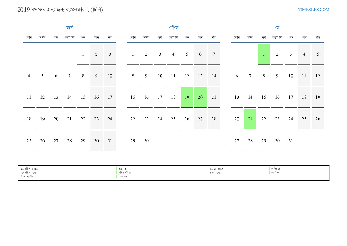 ছুটির দিন ছাড়া ল্যান্ডস্কেপ ক্যালেন্ডার