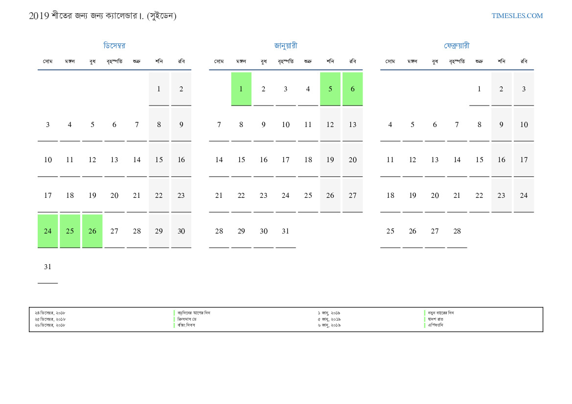 ছুটির দিনগুলি ল্যান্ডস্কেপ ক্যালেন্ডার