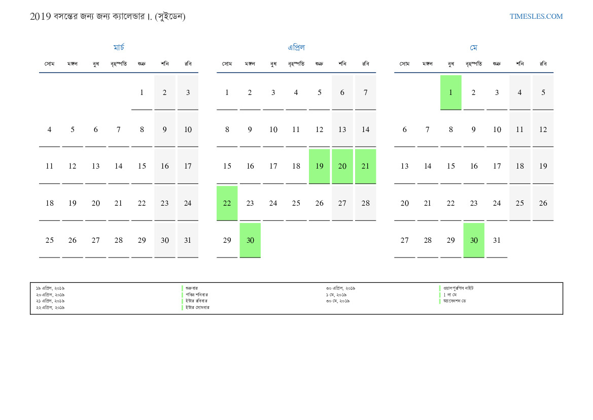 সুইডেনের জন্য 2019 সালের বসন্তের জন্য ছুটি এবং সাপ্তাহিক ছুটির সাথে পিডিএফ ক্যালেন্ডার ডাউনলোড এবং মুদ্রণ করুন