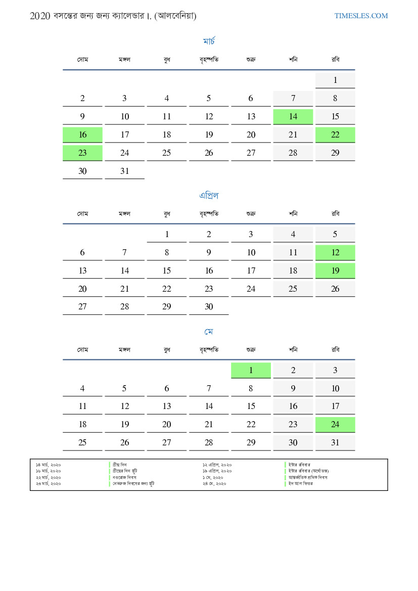 ১৩ এপ্রিল, ২০২০ ইস্টার সোমবার