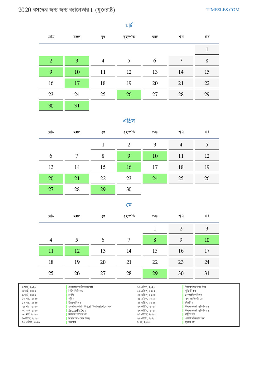 ২৭ এপ্রিল, ২০২০ রাষ্ট্রীয় ছুটি