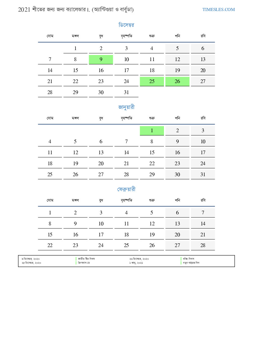 ছুটির দিনগুলি পোর্ট্রেট ক্যালেন্ডার