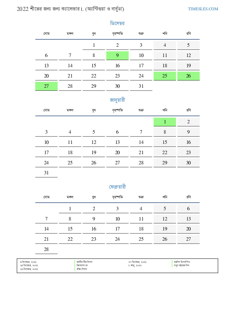 ছুটির দিনগুলি পোর্ট্রেট ক্যালেন্ডার
