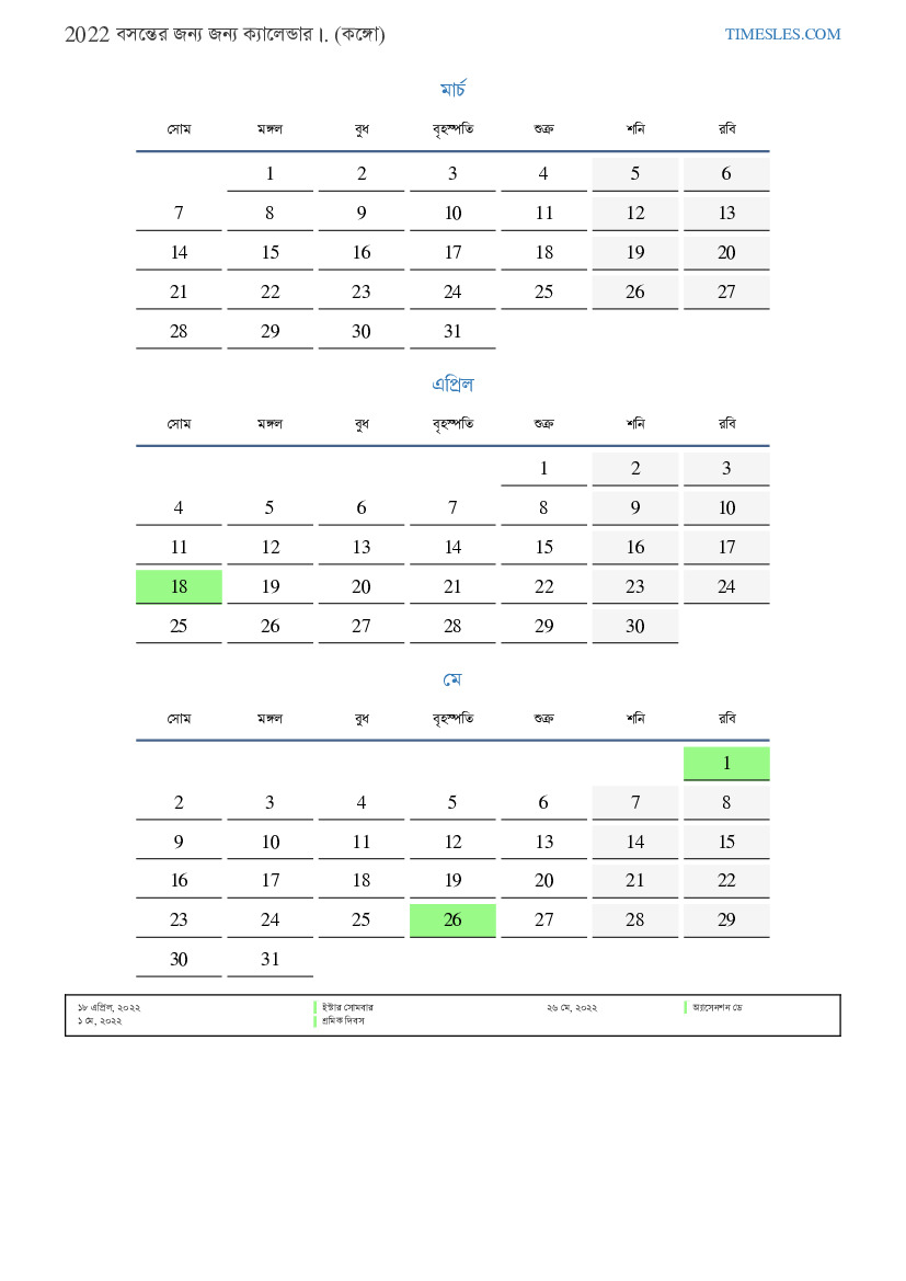 কঙ্গোর জন্য 2022 সালের বসন্তের জন্য ছুটি এবং সাপ্তাহিক ছুটির সাথে পিডিএফ ক্যালেন্ডার ডাউনলোড এবং মুদ্রণ করুন