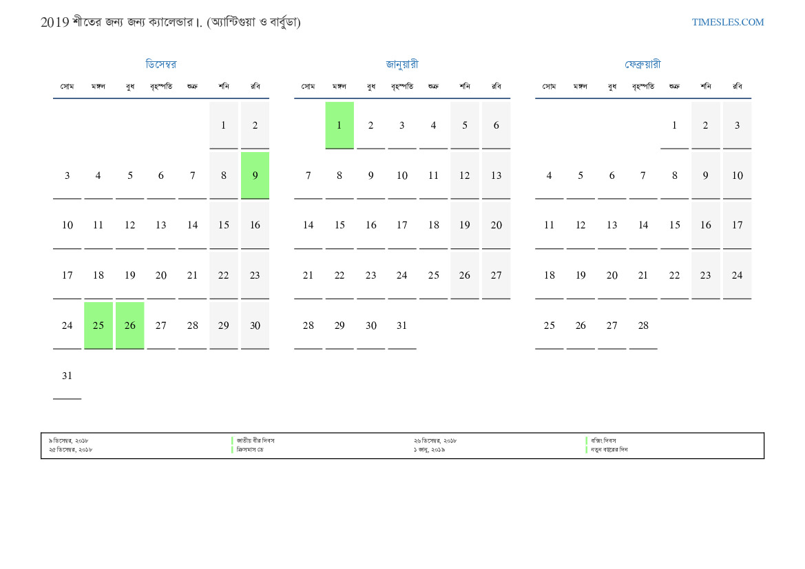 ছুটির দিনগুলি ল্যান্ডস্কেপ ক্যালেন্ডার