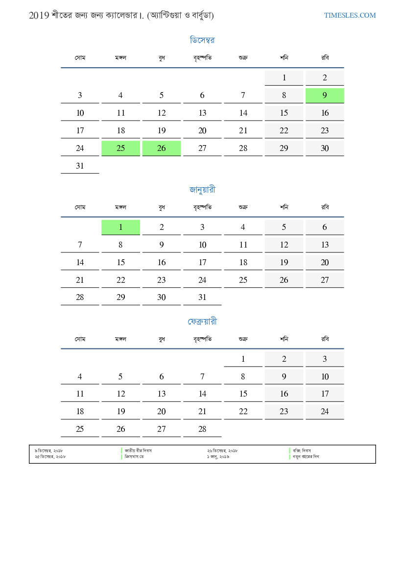 ছুটির দিনগুলি পোর্ট্রেট ক্যালেন্ডার
