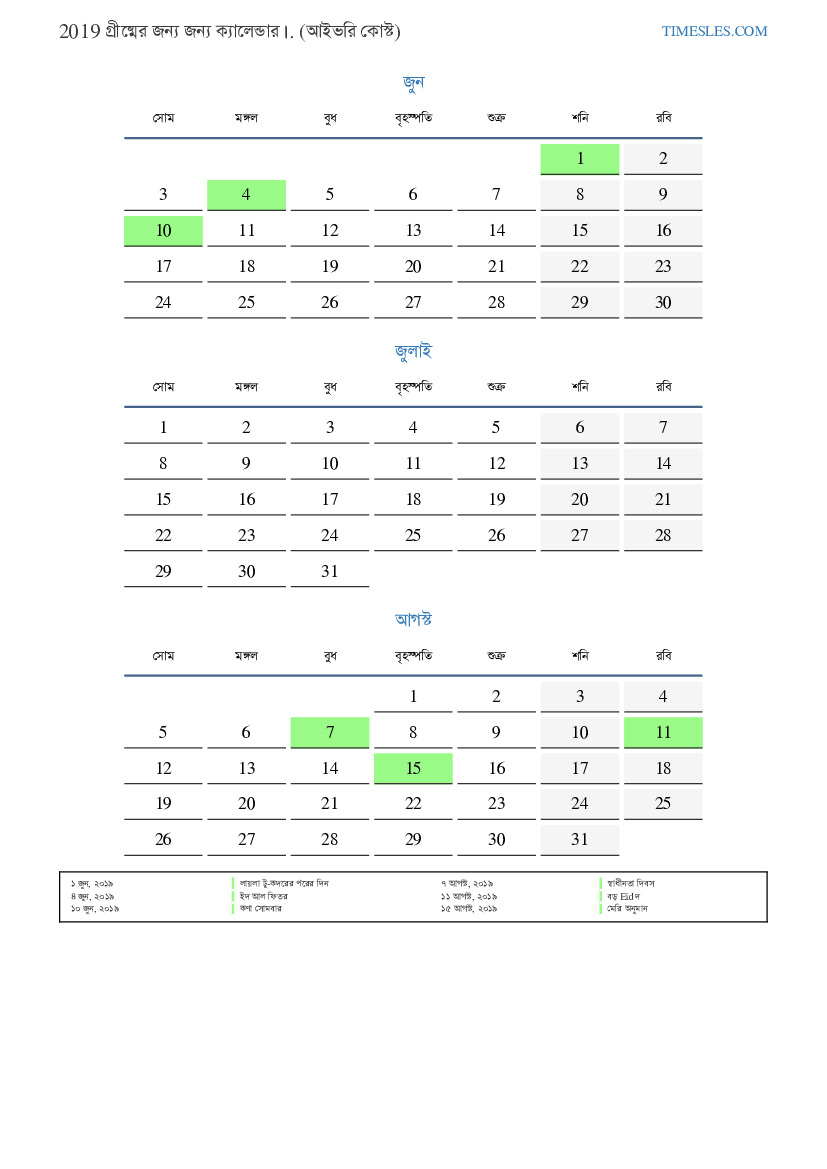 কোট ডি'ভায়ারের জন্য 2019 সালের গ্রীষ্মের জন্য ছুটি এবং সাপ্তাহিক ছুটির সাথে পিডিএফ ক্যালেন্ডার ডাউনলোড এবং মুদ্রণ করুন