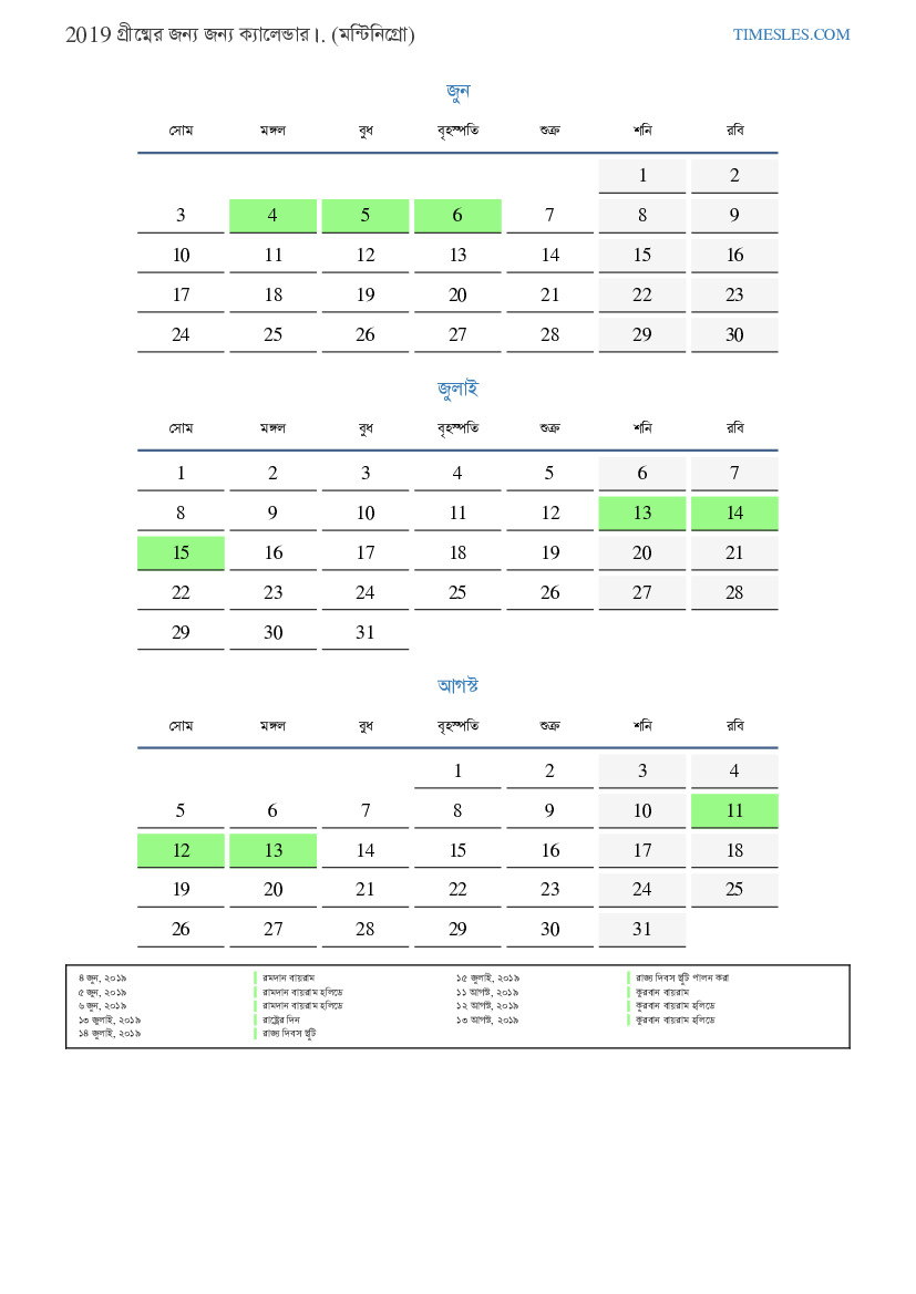 ১৪ জুলাই, ২০১৯ রাজ্য দিবস ছুটি
