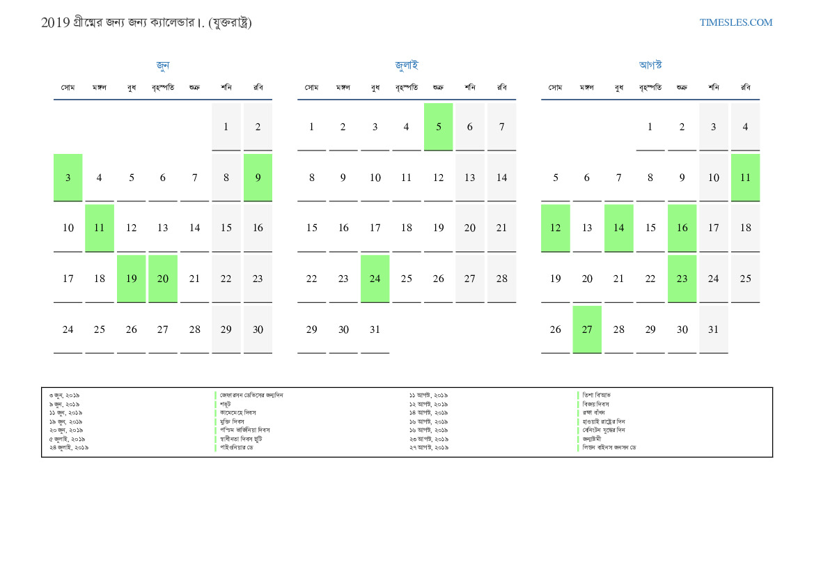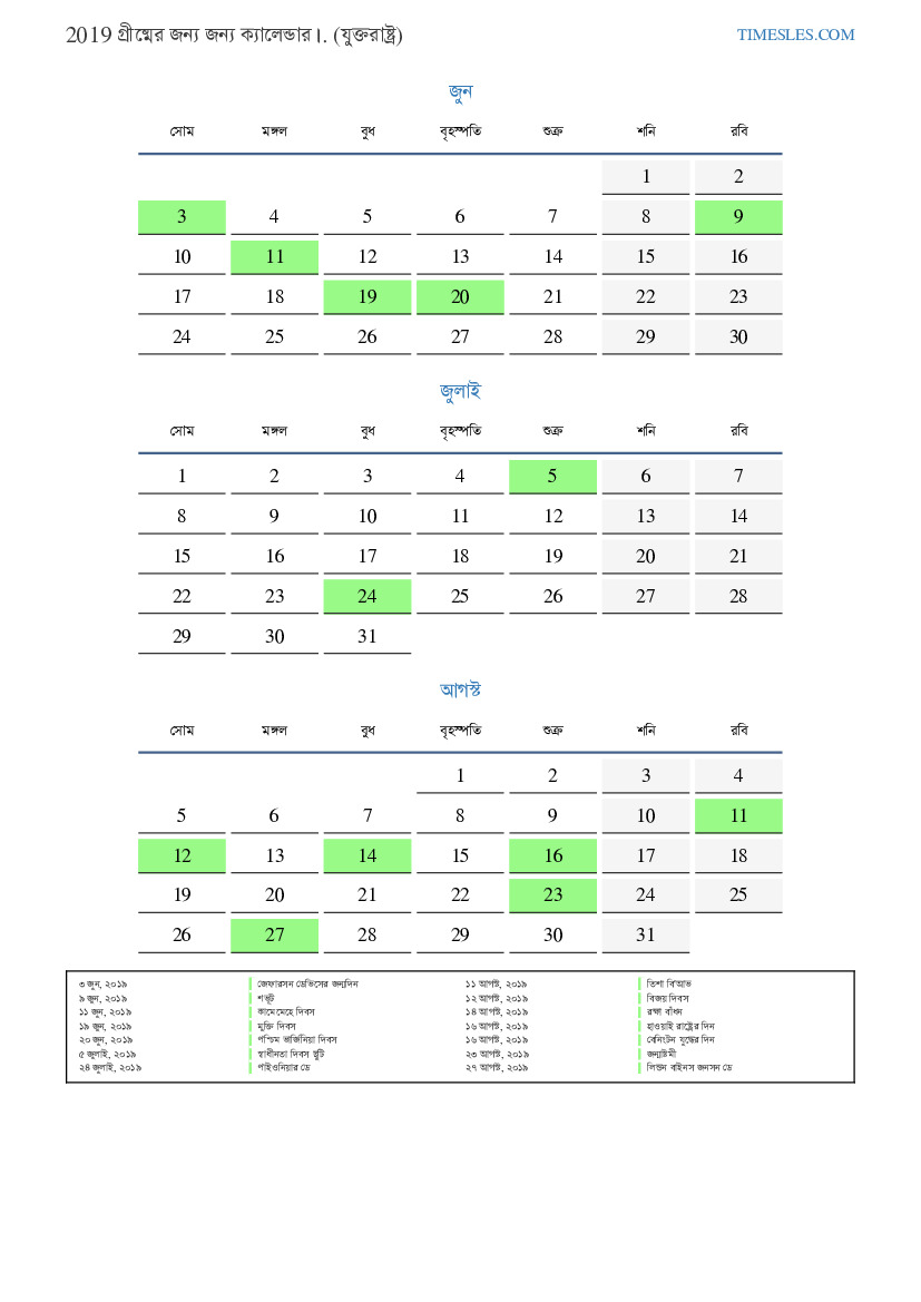 ৫ জুলাই, ২০১৯ স্বাধীনতা দিবস ছুটি