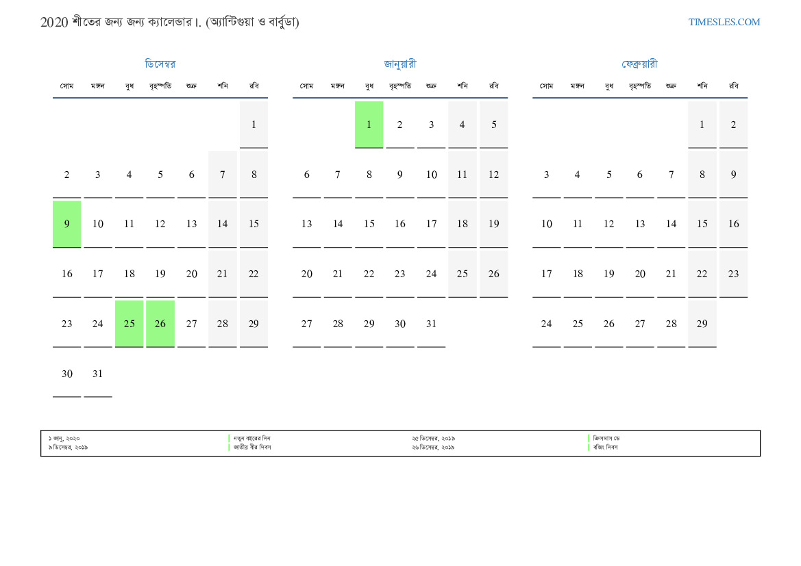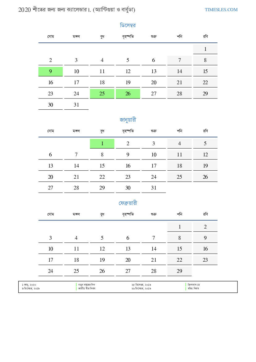ছুটির দিনগুলি ল্যান্ডস্কেপ ক্যালেন্ডার