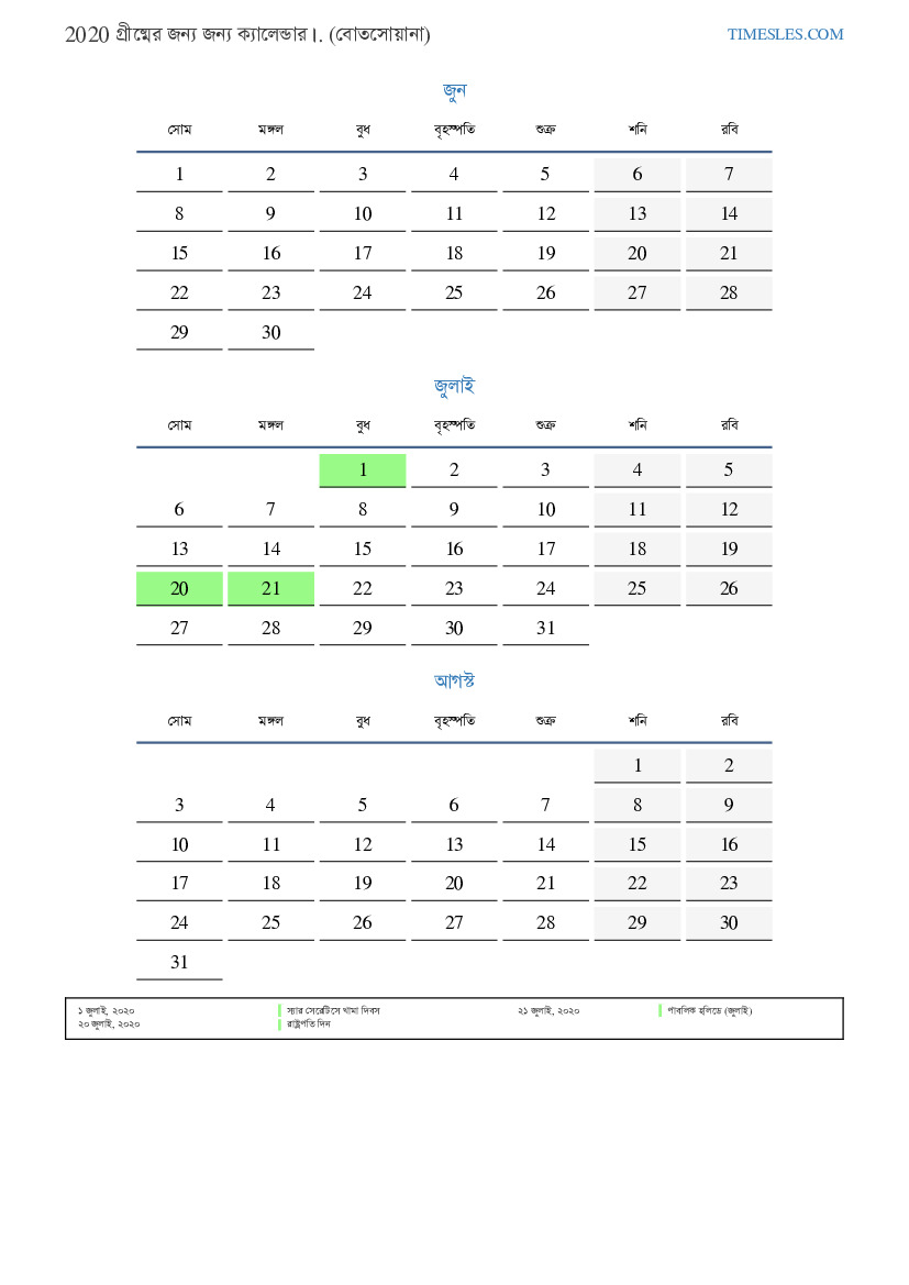 বতসোয়ানা জন্য 2020 সালের গ্রীষ্মের জন্য ছুটি এবং সাপ্তাহিক ছুটির সাথে পিডিএফ ক্যালেন্ডার ডাউনলোড এবং মুদ্রণ করুন