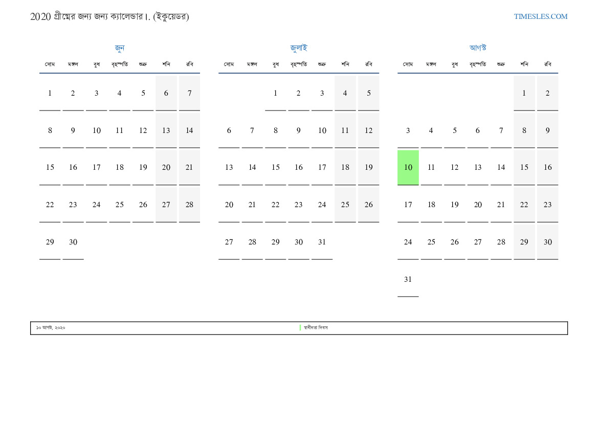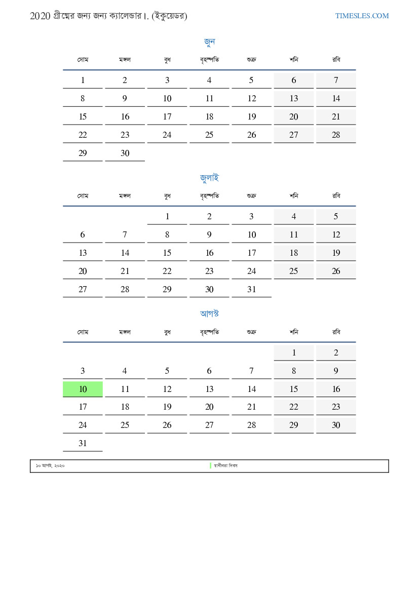 ইকুয়েডরের জন্য 2020 সালের গ্রীষ্মের জন্য ছুটি এবং সাপ্তাহিক ছুটির সাথে পিডিএফ ক্যালেন্ডার ডাউনলোড এবং মুদ্রণ করুন