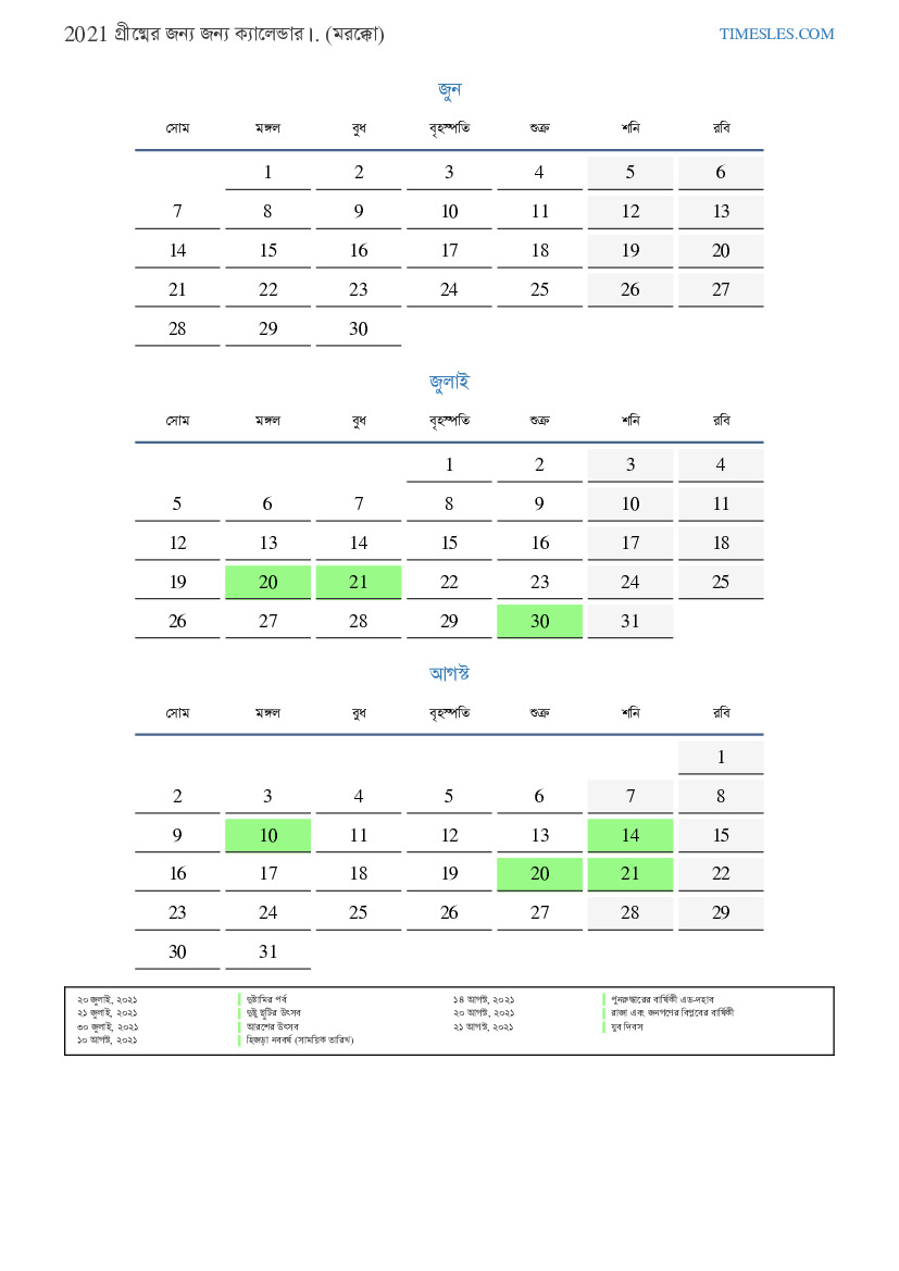 মরক্কোর জন্য 2021 সালের গ্রীষ্মের জন্য ছুটি এবং সাপ্তাহিক ছুটির সাথে পিডিএফ ক্যালেন্ডার ডাউনলোড এবং মুদ্রণ করুন