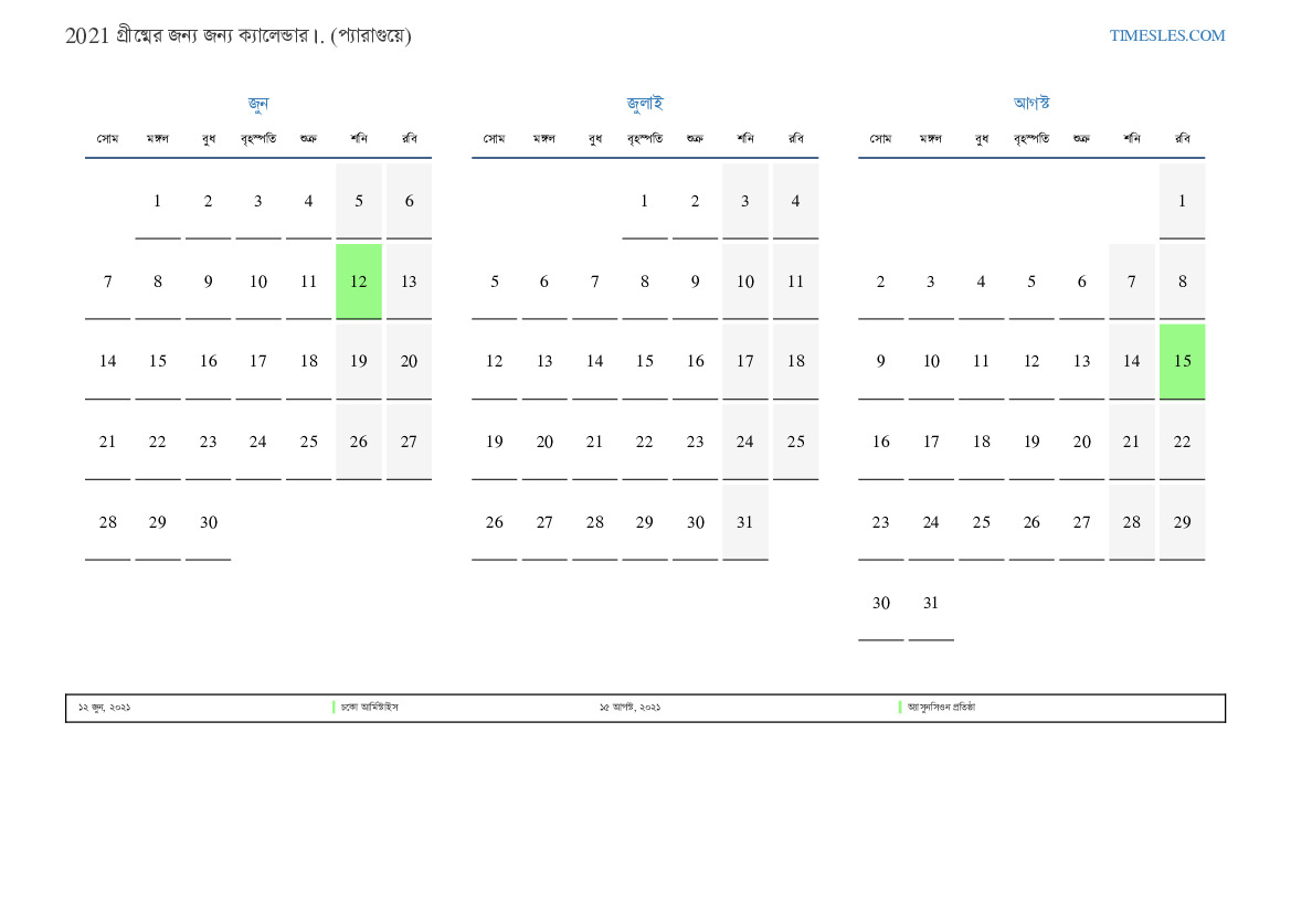 প্যারাগুয়ের জন্য 2021 সালের গ্রীষ্মের জন্য ক্যালেন্ডার