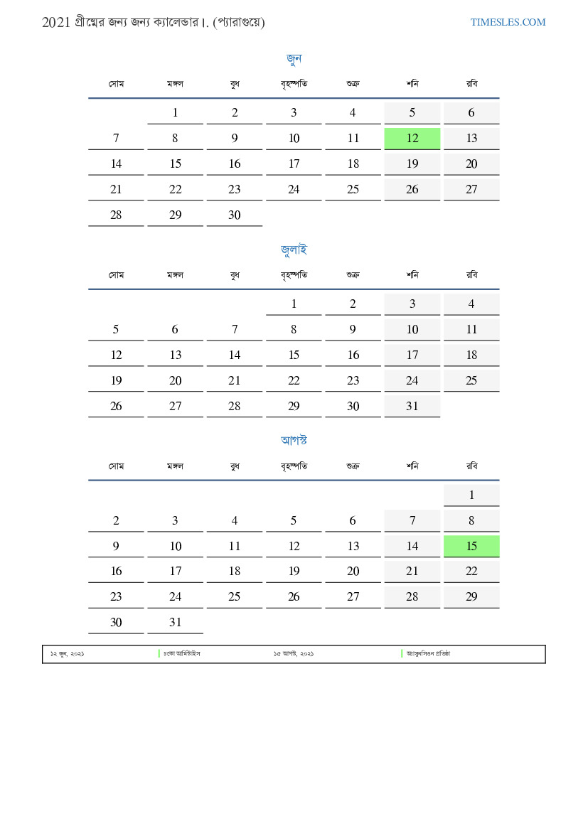 প্যারাগুয়ের জন্য 2021 সালের গ্রীষ্মের জন্য ছুটির দিনগুলি এবং সাপ্তাহিক ছুটির দিনগুলি