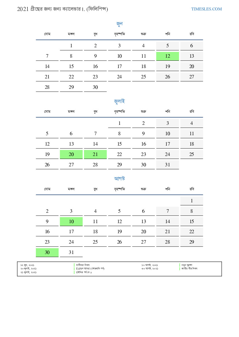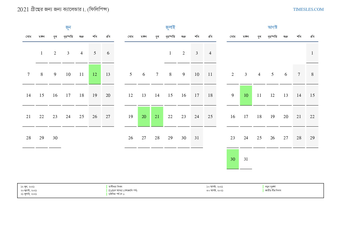 ফিলিপাইন জন্য 2021 সালের গ্রীষ্মের জন্য ছুটি এবং সাপ্তাহিক ছুটির সাথে পিডিএফ ক্যালেন্ডার ডাউনলোড এবং মুদ্রণ করুন
