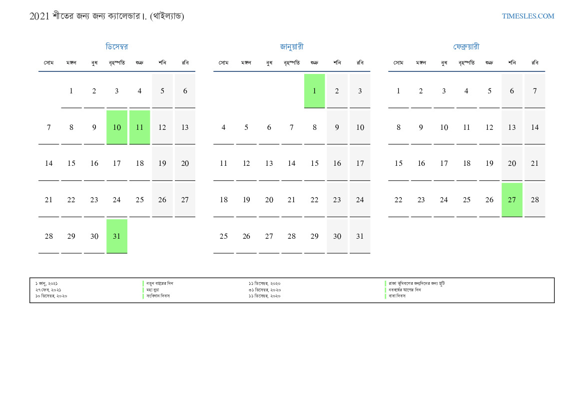 ব্যবসায়ের দিন ক্যালেন্ডার
