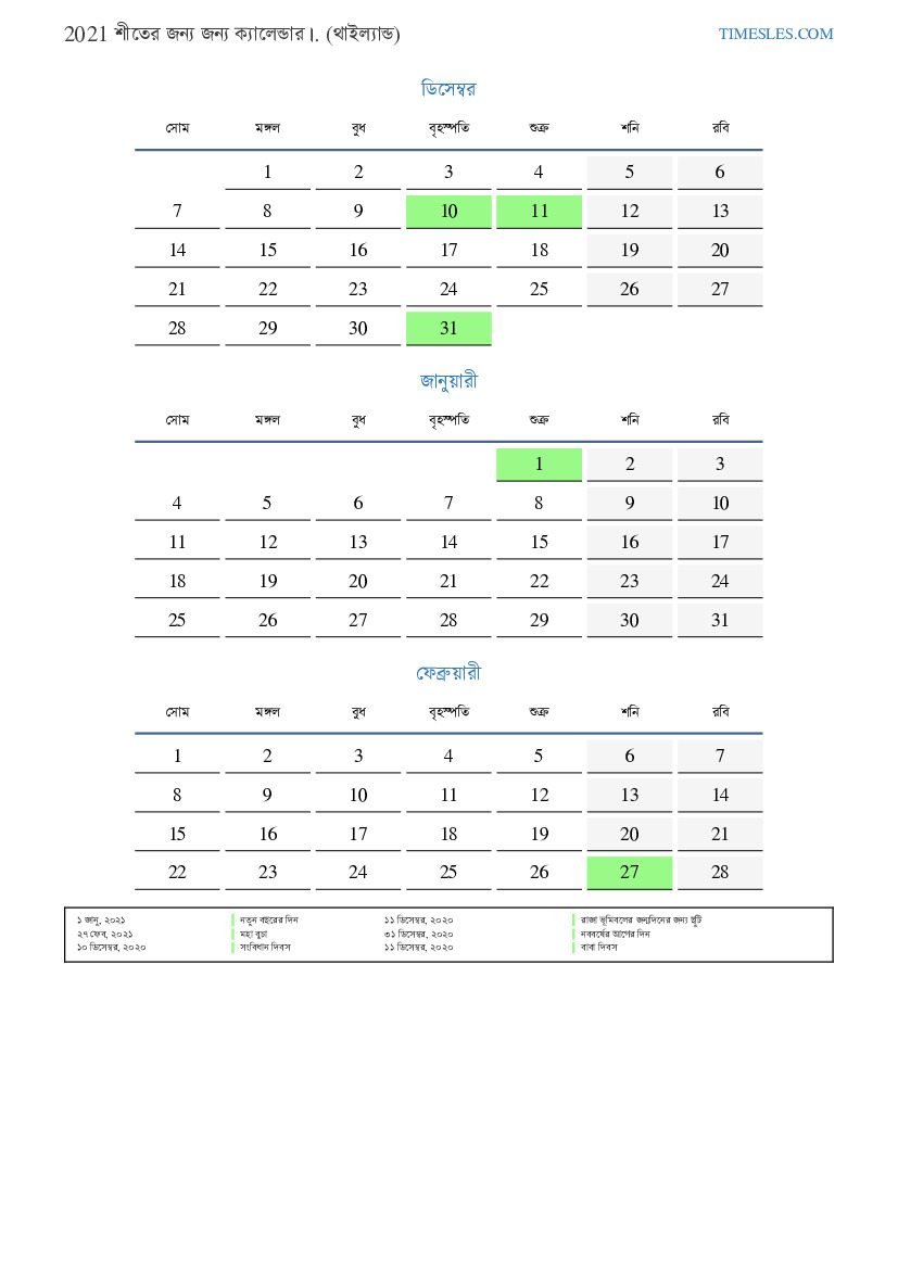ছুটির দিনগুলি ল্যান্ডস্কেপ ক্যালেন্ডার