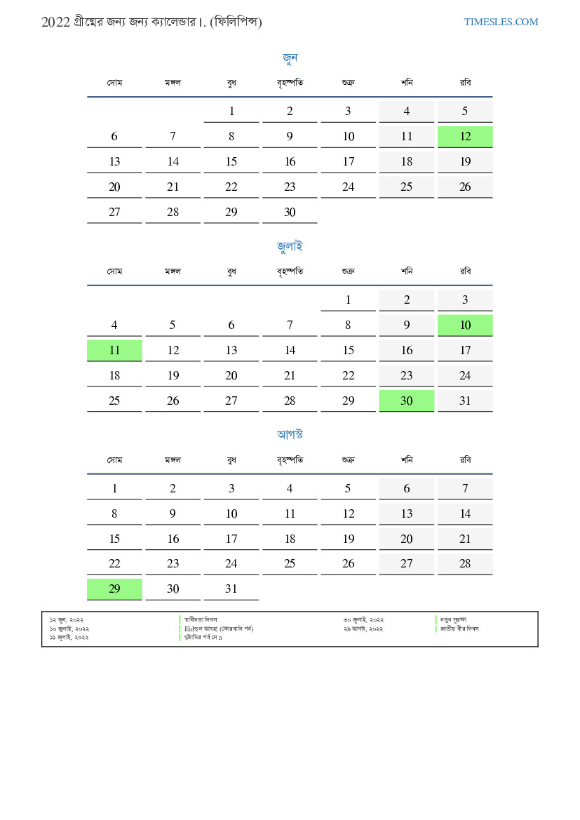 ফিলিপাইন জন্য 2022 সালের গ্রীষ্মের জন্য ছুটি এবং সাপ্তাহিক ছুটির সাথে পিডিএফ ক্যালেন্ডার ডাউনলোড এবং মুদ্রণ করুন