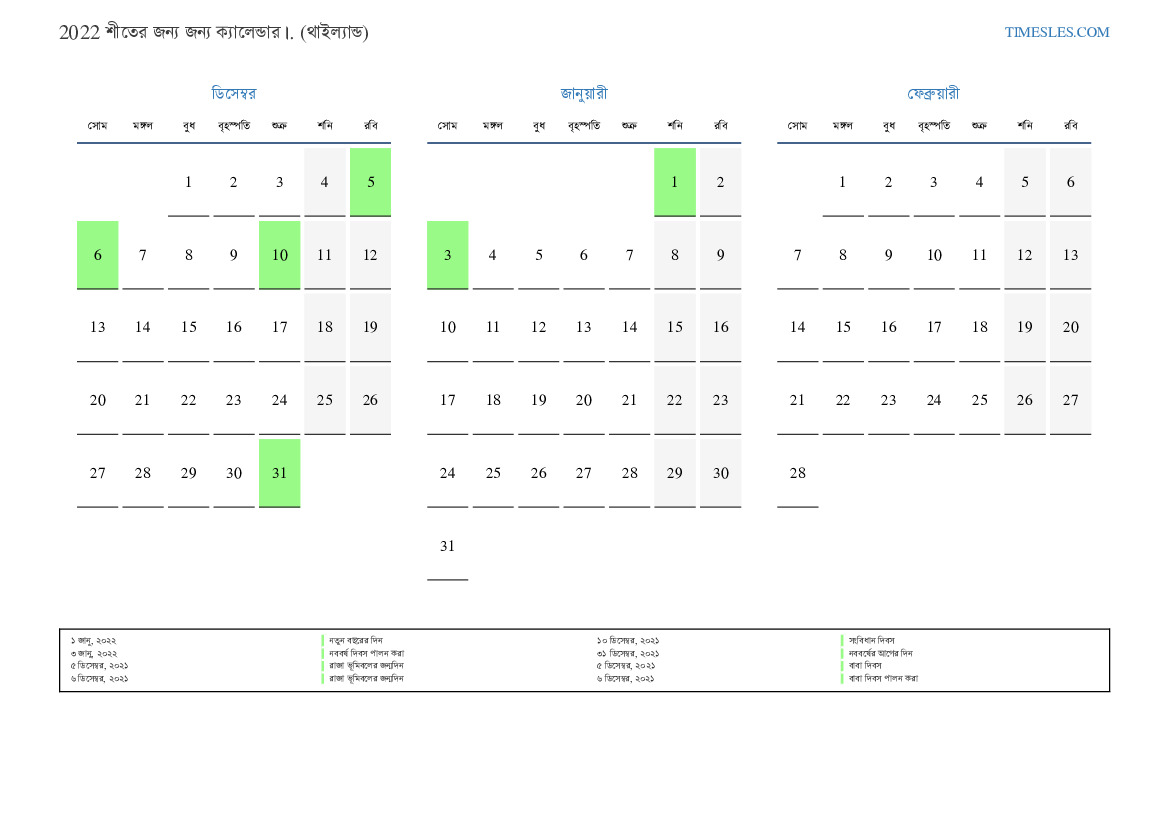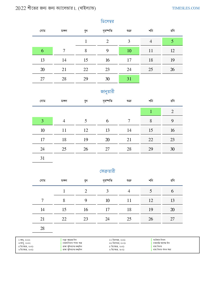 ছুটির দিনগুলি ল্যান্ডস্কেপ ক্যালেন্ডার