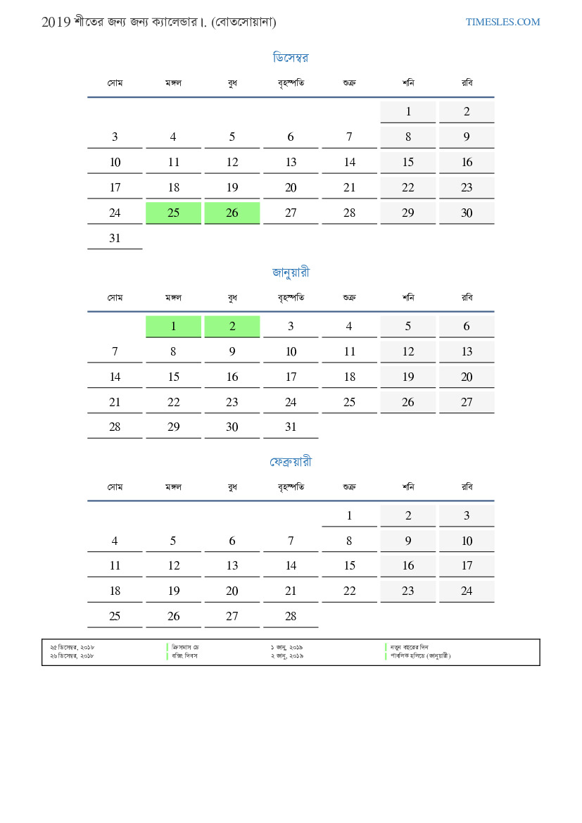 বতসোয়ানা জন্য 2019 সালের শীতের জন্য ছুটি এবং সাপ্তাহিক ছুটির সাথে পিডিএফ ক্যালেন্ডার ডাউনলোড এবং মুদ্রণ করুন