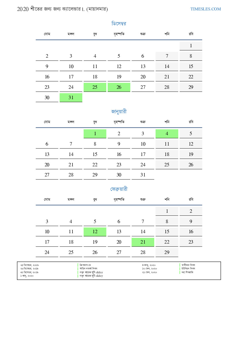 ১ জানু, ২০২০ নতুন বছরের ছুটি oliday