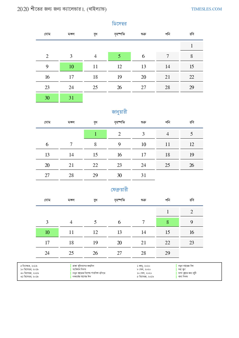 ৩০ ডিসেম্বর, ২০১৯ নতুন বছরের বিশেষ পাবলিক হলিডে
