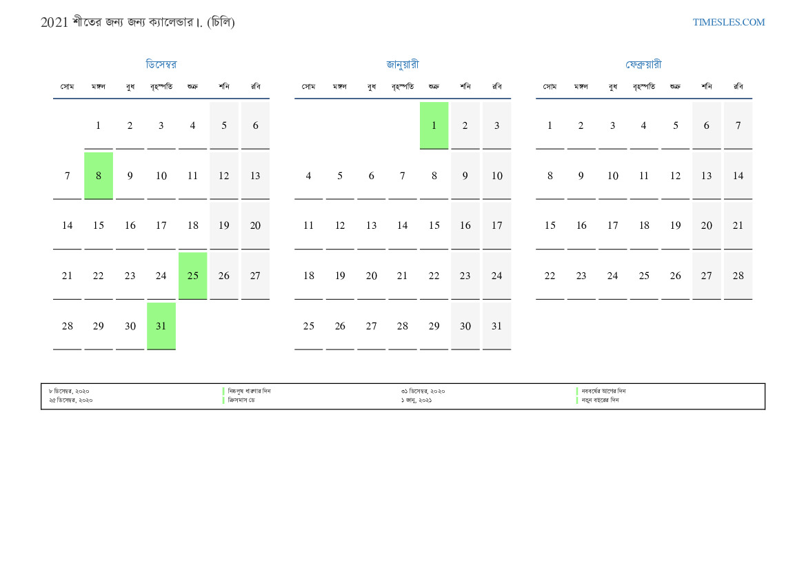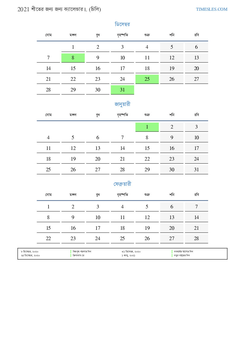 ছুটির দিনগুলি পোর্ট্রেট ক্যালেন্ডার