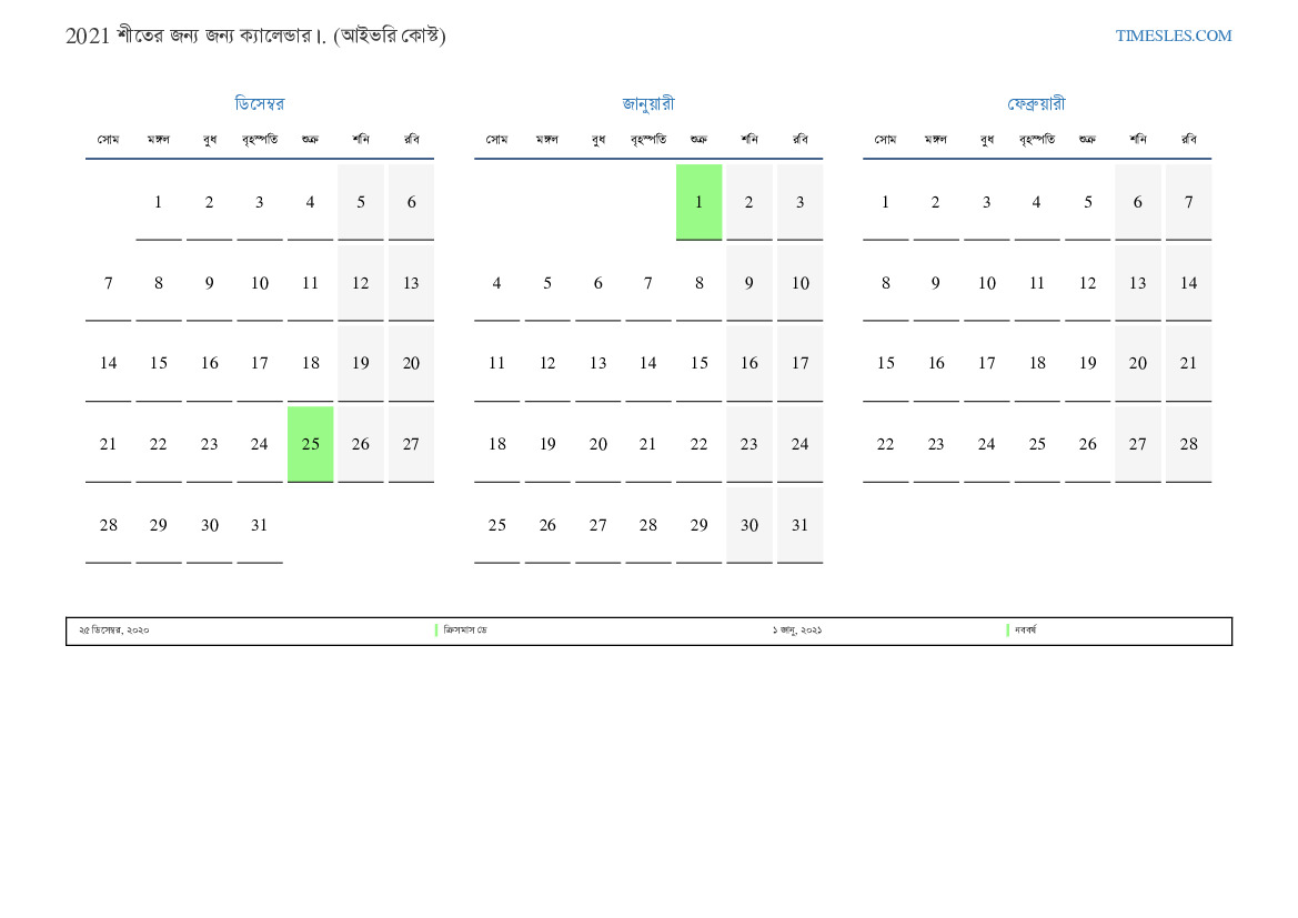 ছুটির দিনগুলি ল্যান্ডস্কেপ ক্যালেন্ডার