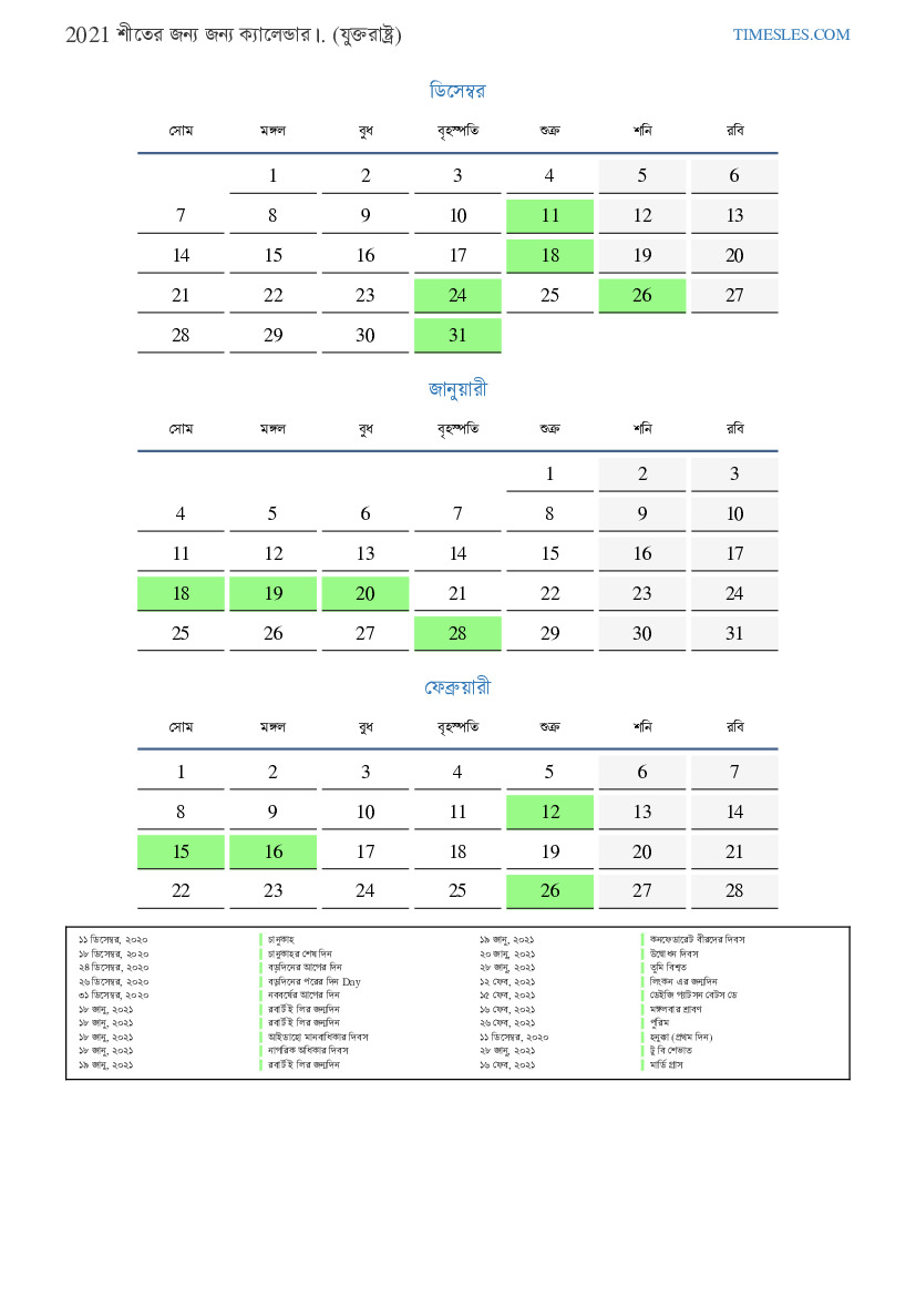২৬ ডিসেম্বর, ২০২০ বড়দিনের পরের দিন Day
