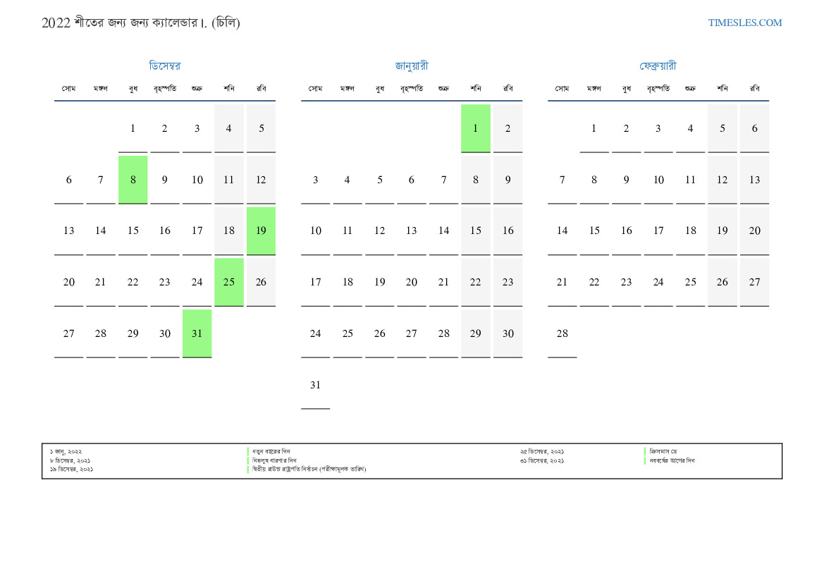 ছুটির দিনগুলি পোর্ট্রেট ক্যালেন্ডার