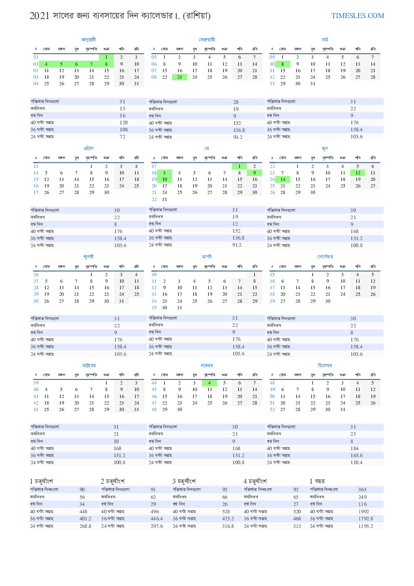 2021 জানুয়ারী কার্যদিবস। 2021 জানুয়ারী রাশিয়ায় ৭ ছুটি এবং দিন ছুটি রয়েছে।