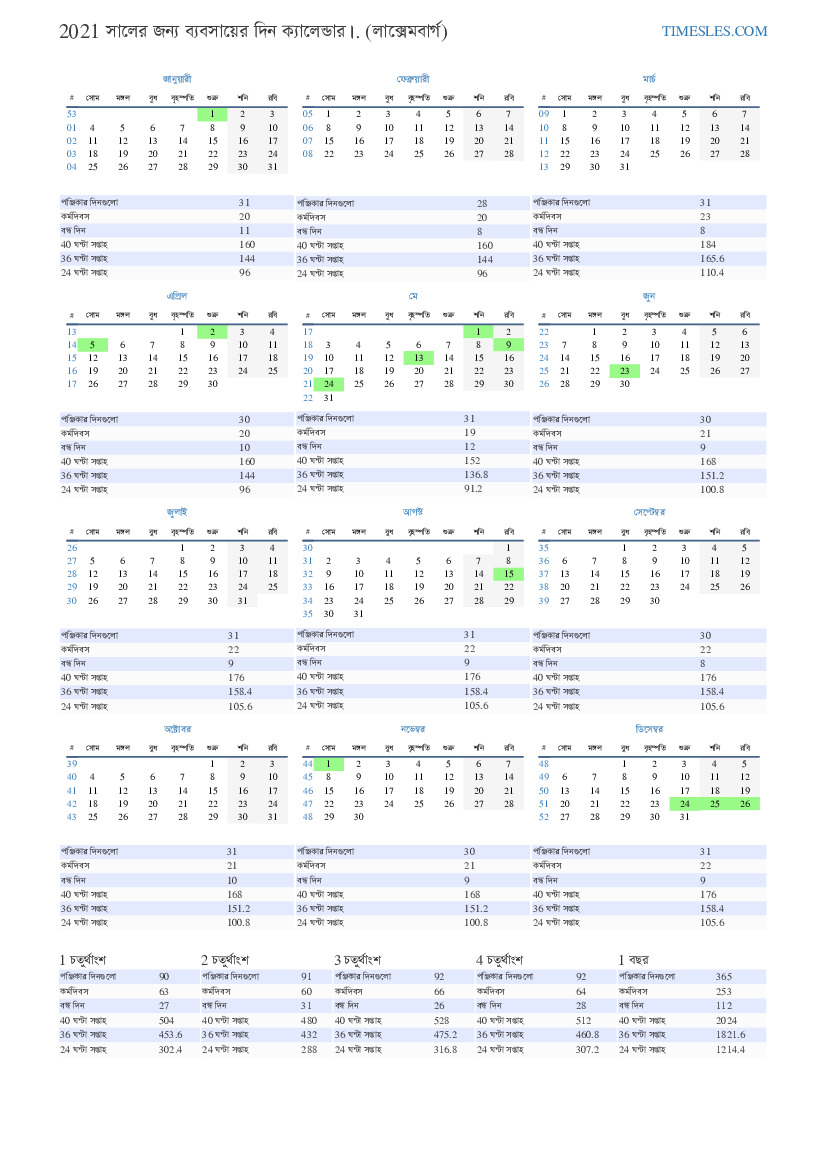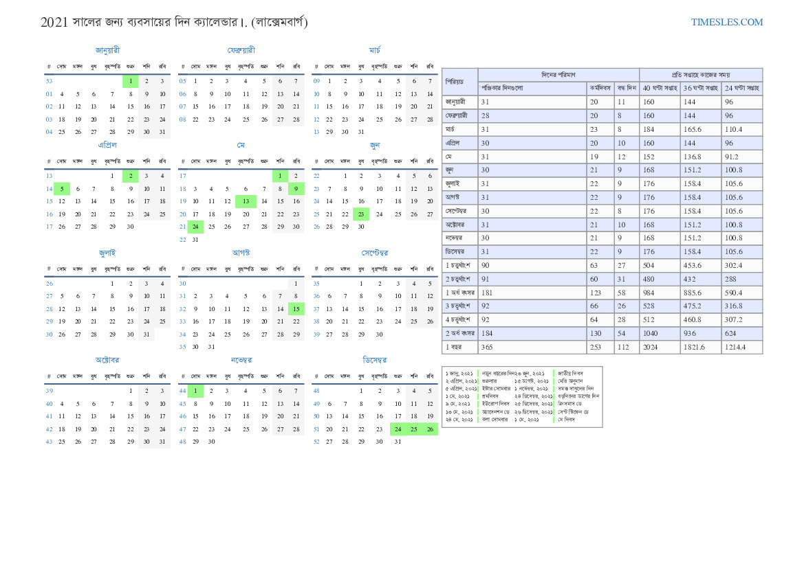 ব্যবসায়ের দিন ক্যালেন্ডার